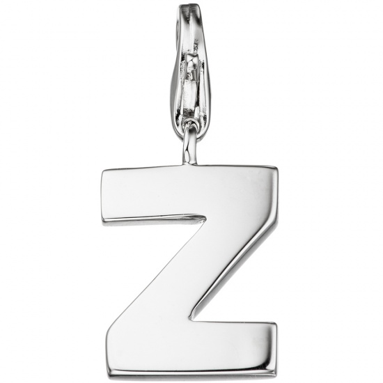 Einhänger / Charm Buchstabe "Z" aus 925 Sterlingsilber, rhodiniert, mit Karabinerverschluss,
