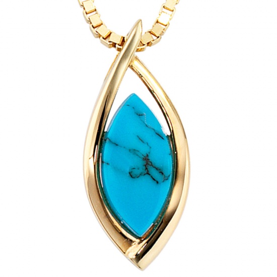 Anhänger ohne Kette aus 14 Karat (585) Gelbgold mit einem Türkis, Höhe ca. 24,2 mm,