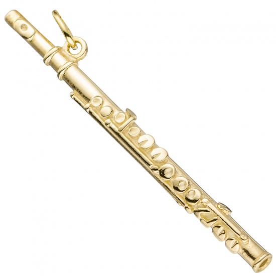 Anhänger "Querflöte" aus 925 Sterlingsilber, vergoldet, Höhe ca. 45,5 mm,
