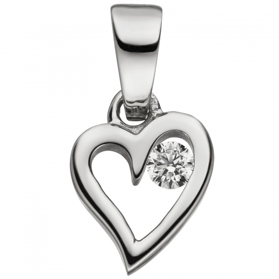 Anhänger "Herz" aus 925 Sterlingsilber, rhodiniert, mit einem Zirkonia, Höhe ca. 10 mm,