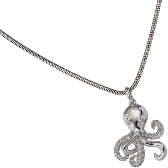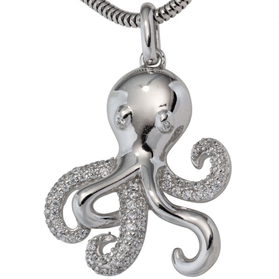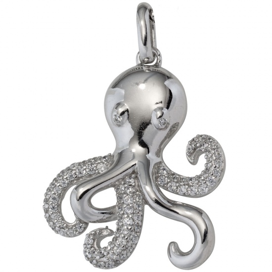 Anhänger "Krake" aus 925 Sterlingsilber, rhodiniert, mit 78 Zirkonia,