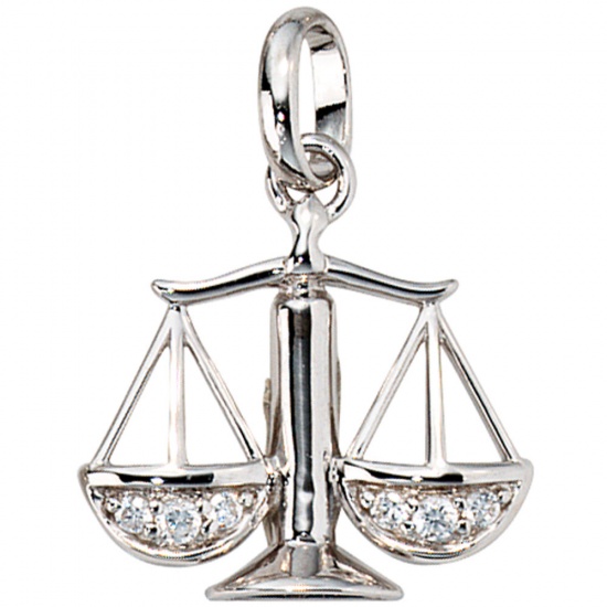 Sternzeichen "Waage" aus 925 Sterlingsilber, rhodiniert, mit Zirkonia,