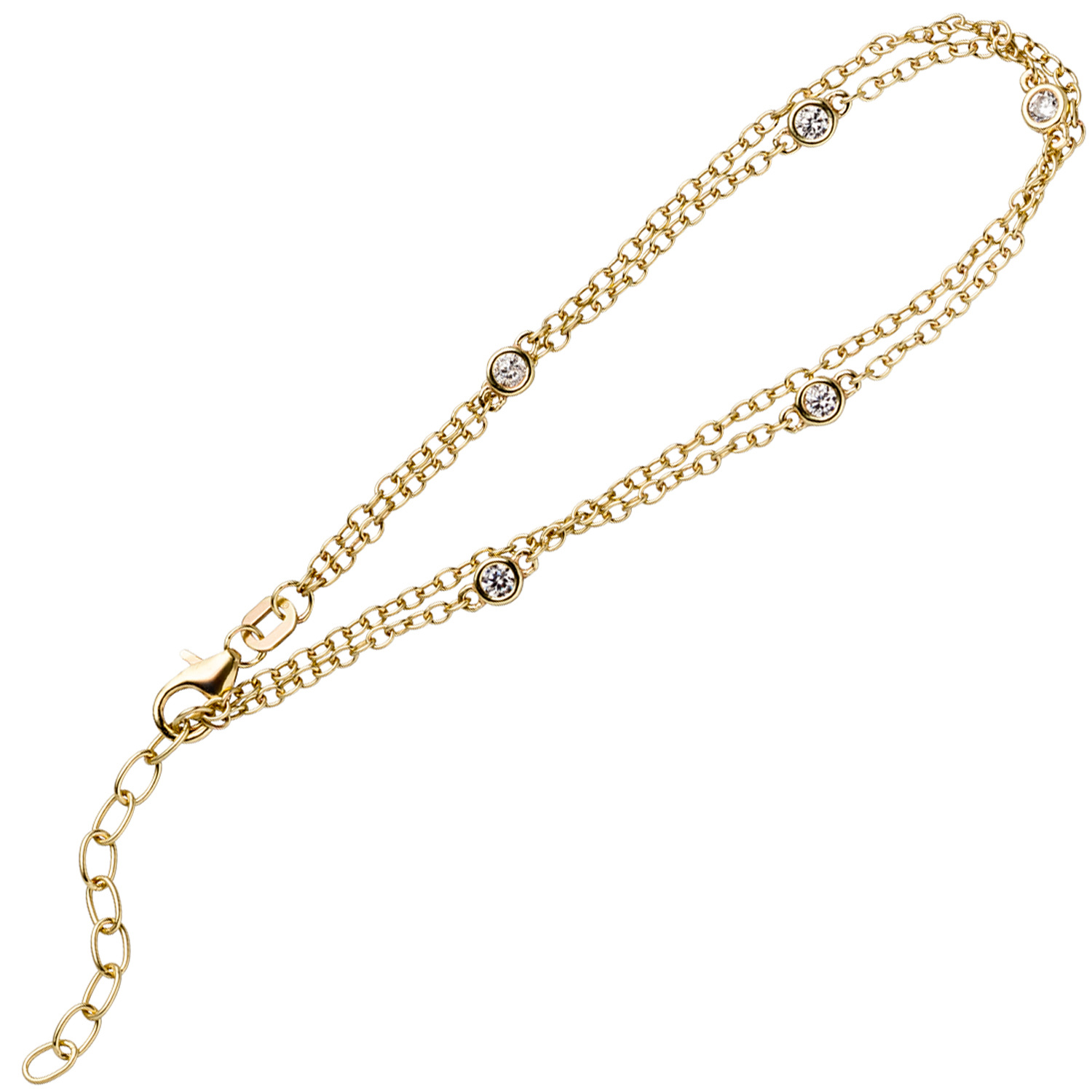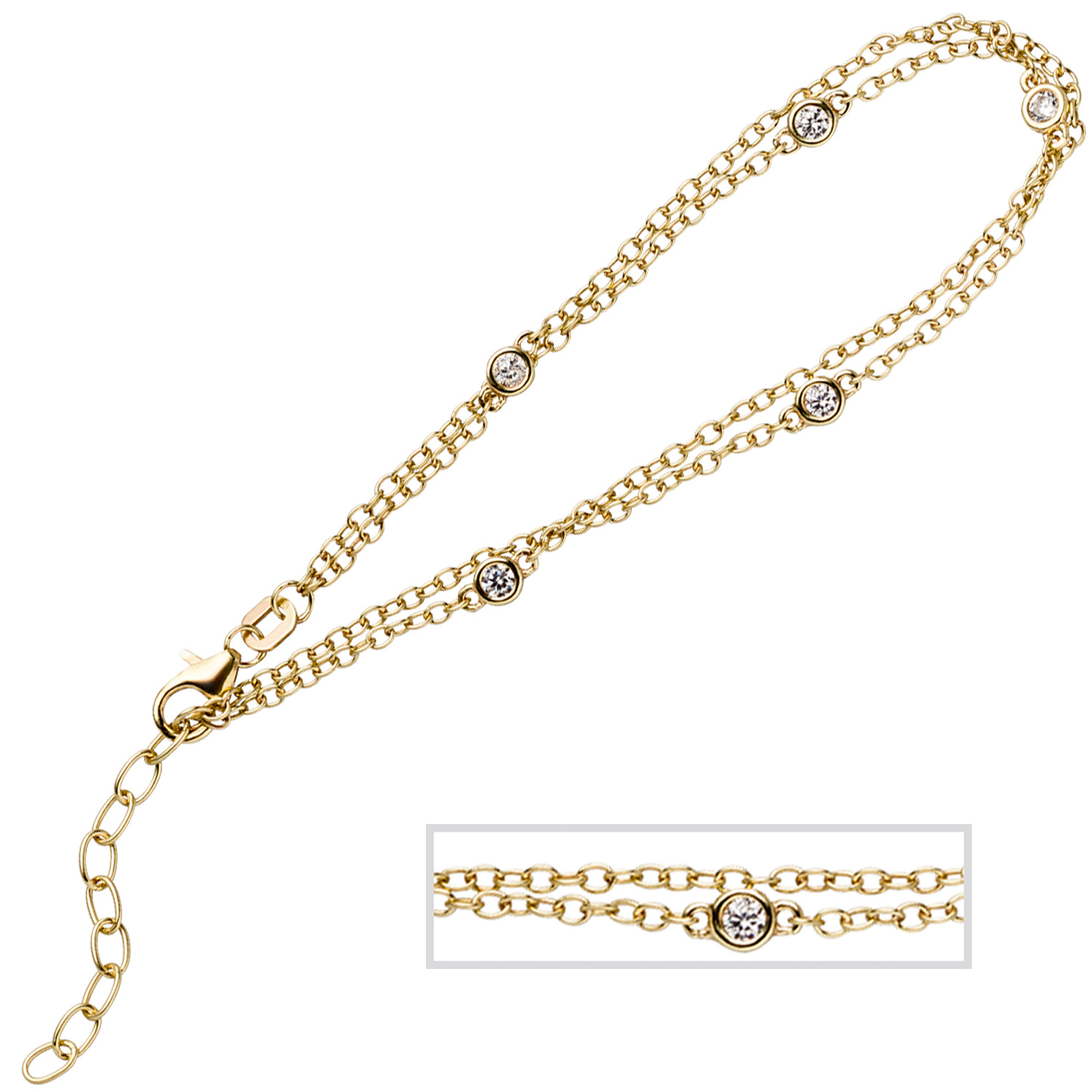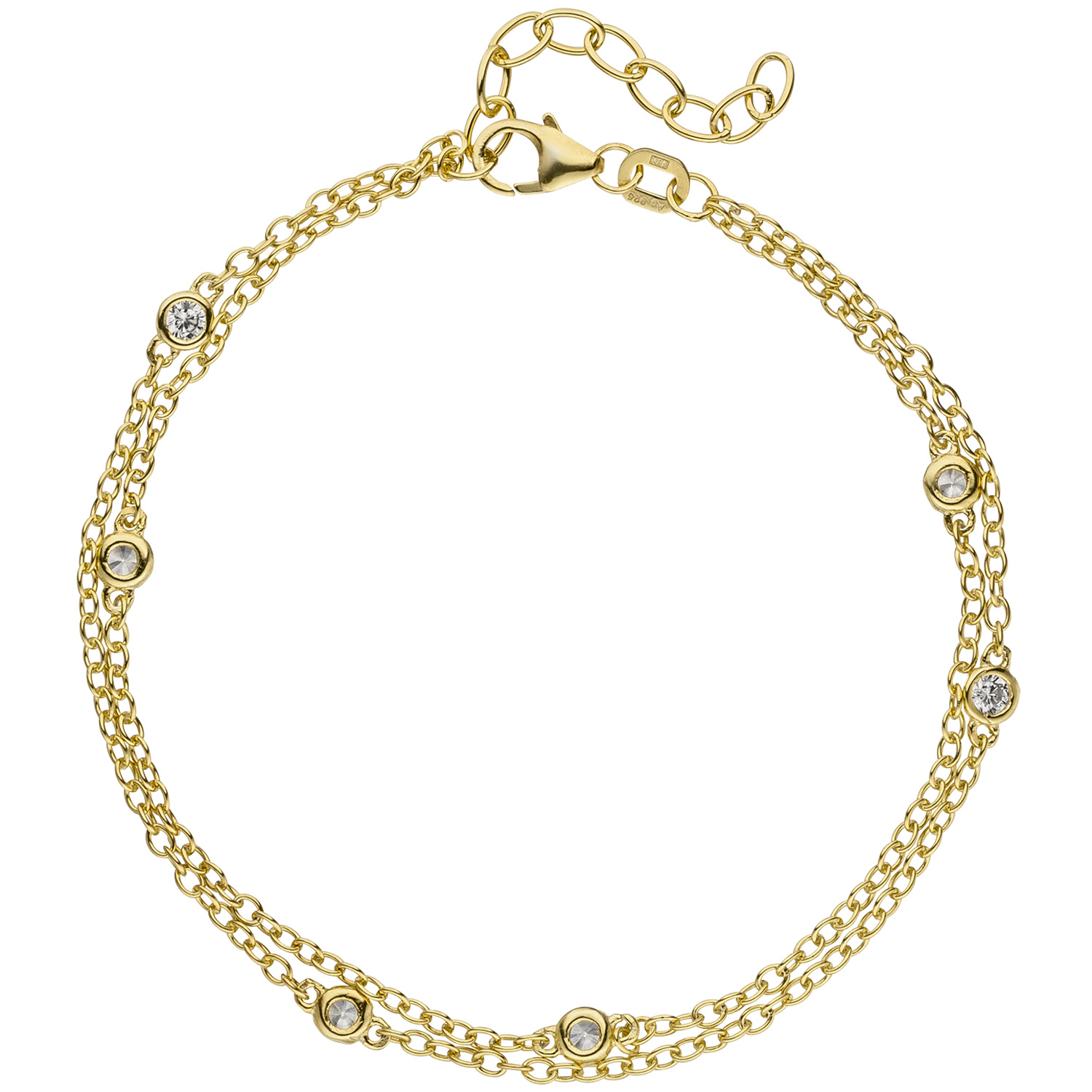 2-reihiges Ankerarmband aus 925 Sterlingsilber, vergoldet, mit 5 Zirkonia und