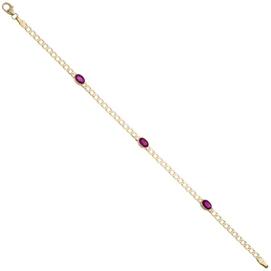 Armband aus 14 Karat (585) Gelbgold mit 3 Rubinen und Karabinerverschluss,