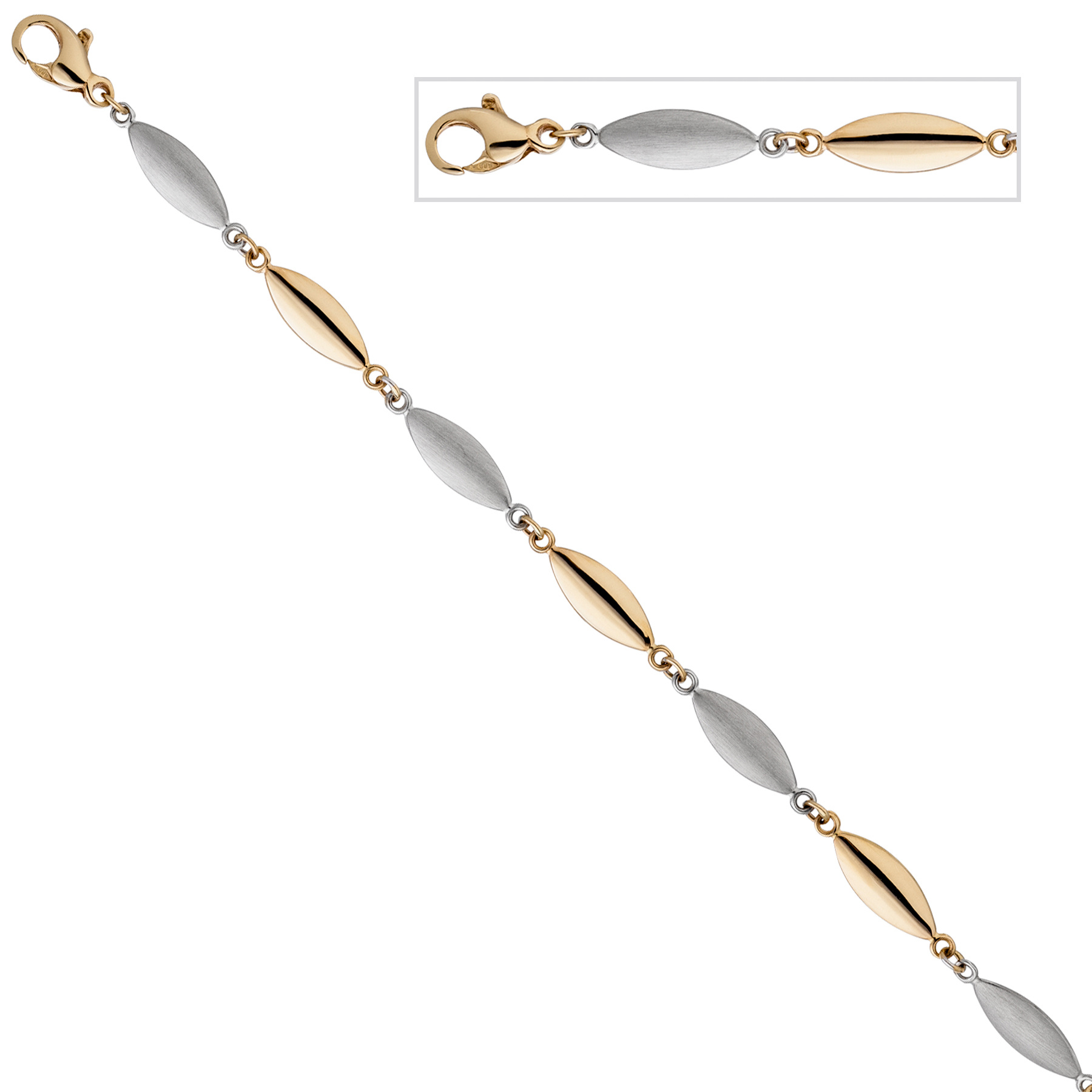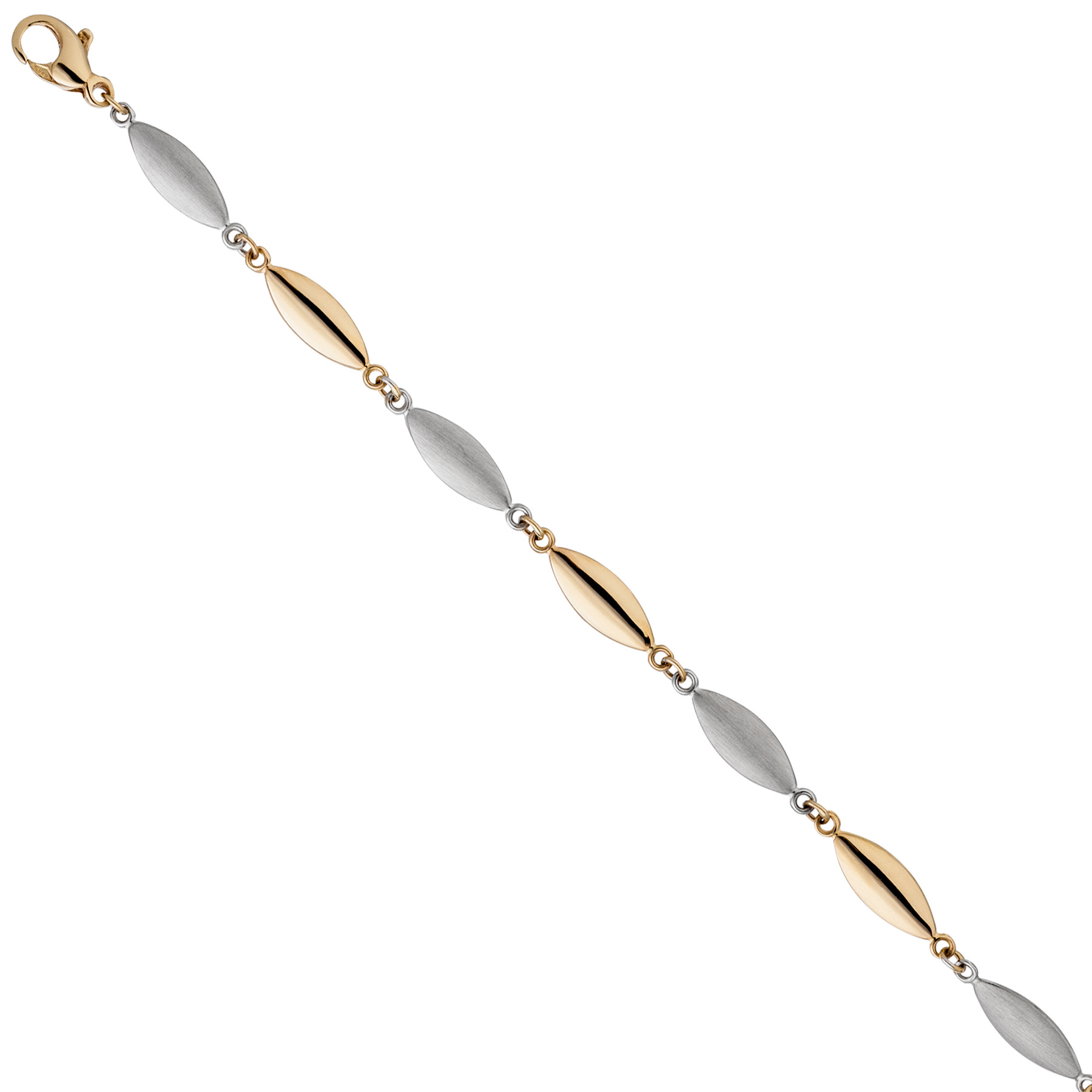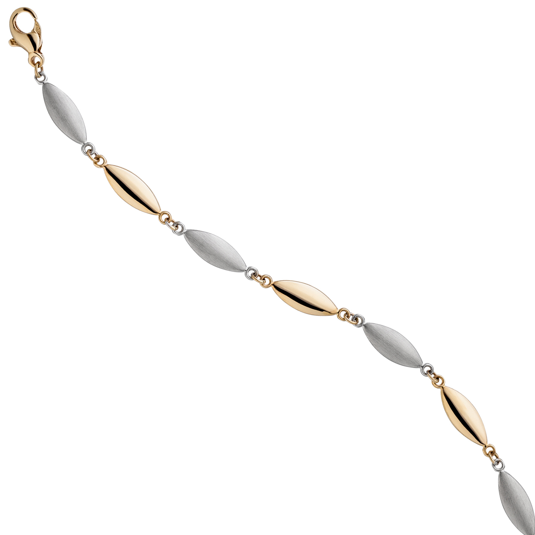 Armband aus 14 Karat (585) Gold, Gelbgold mit Weißgold kombiniert, teilmattiert,