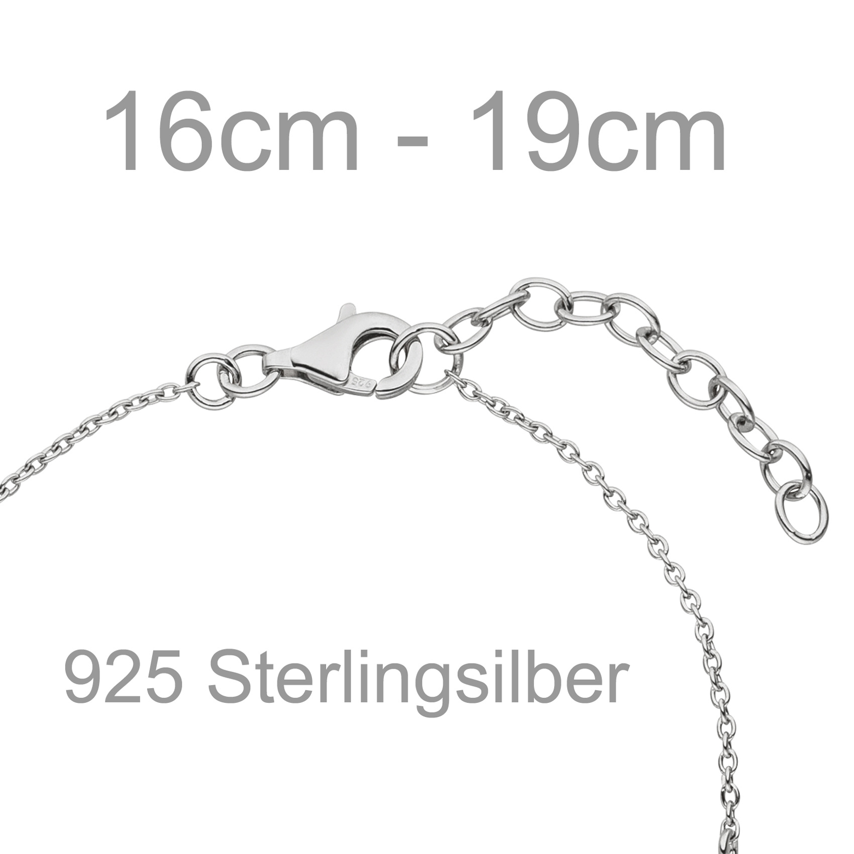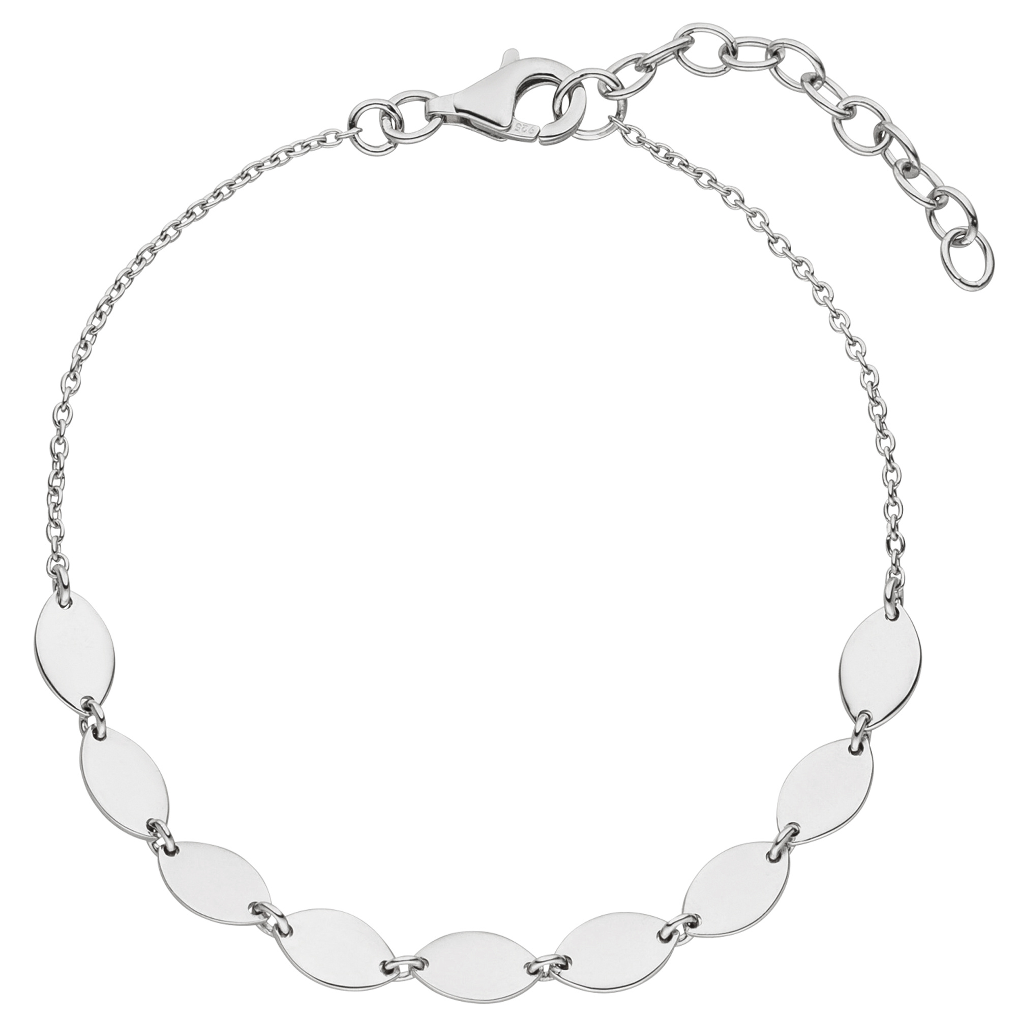 Ankerarmband aus 925 Sterlingsilber, rhodiniert, mit Karabinerverschluss,