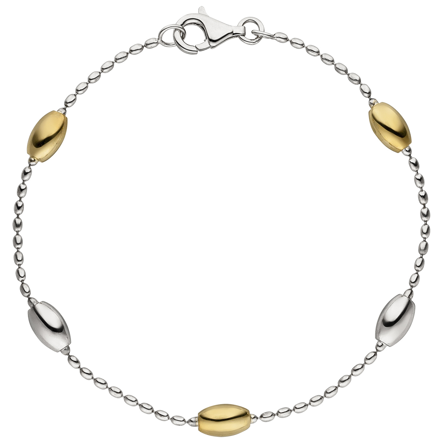 Armband aus 925 Sterlingsilber, rhodiniert und teilvergoldet, mit Karabinerverschluss,
