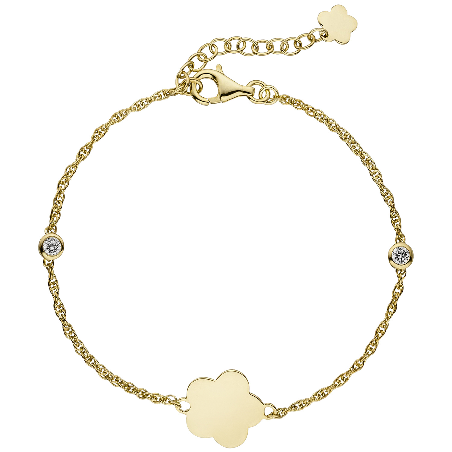 Armband "Blume" aus 925 Sterlingsilber, vergoldet, mit 2 Zirkonia und Karabinerverschluss,