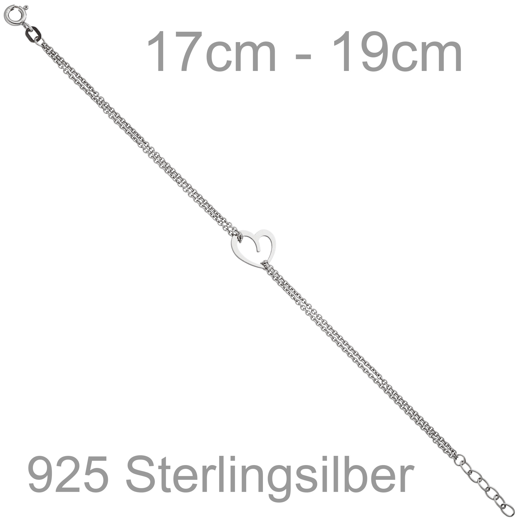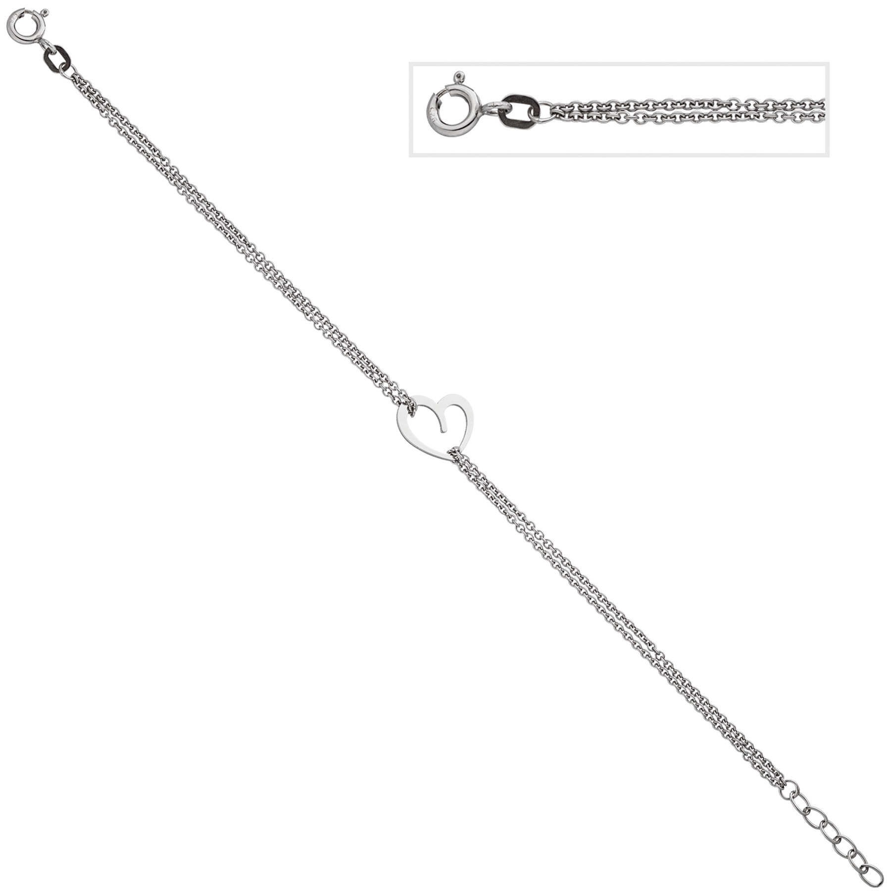 Armband "Herz" aus 925 Sterlingsilber, rhodiniert, Federringverschluss,
