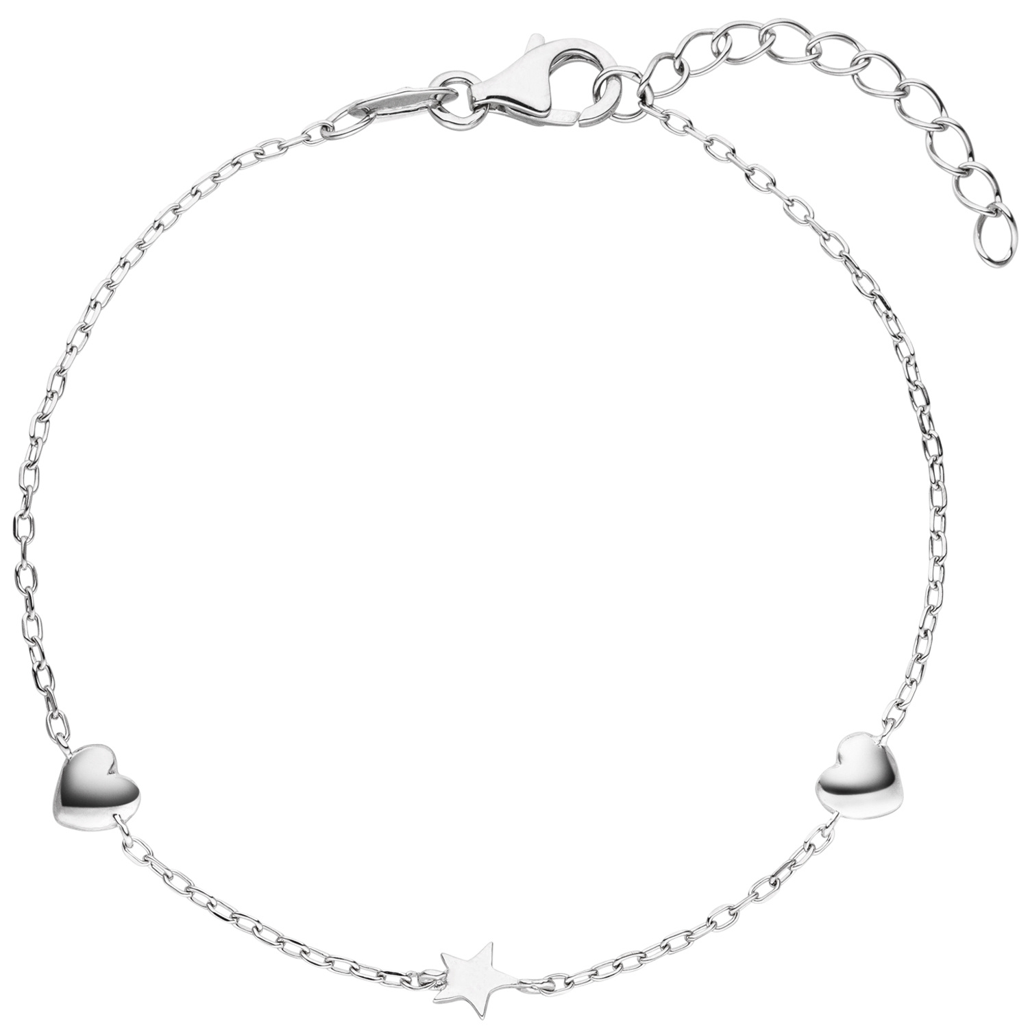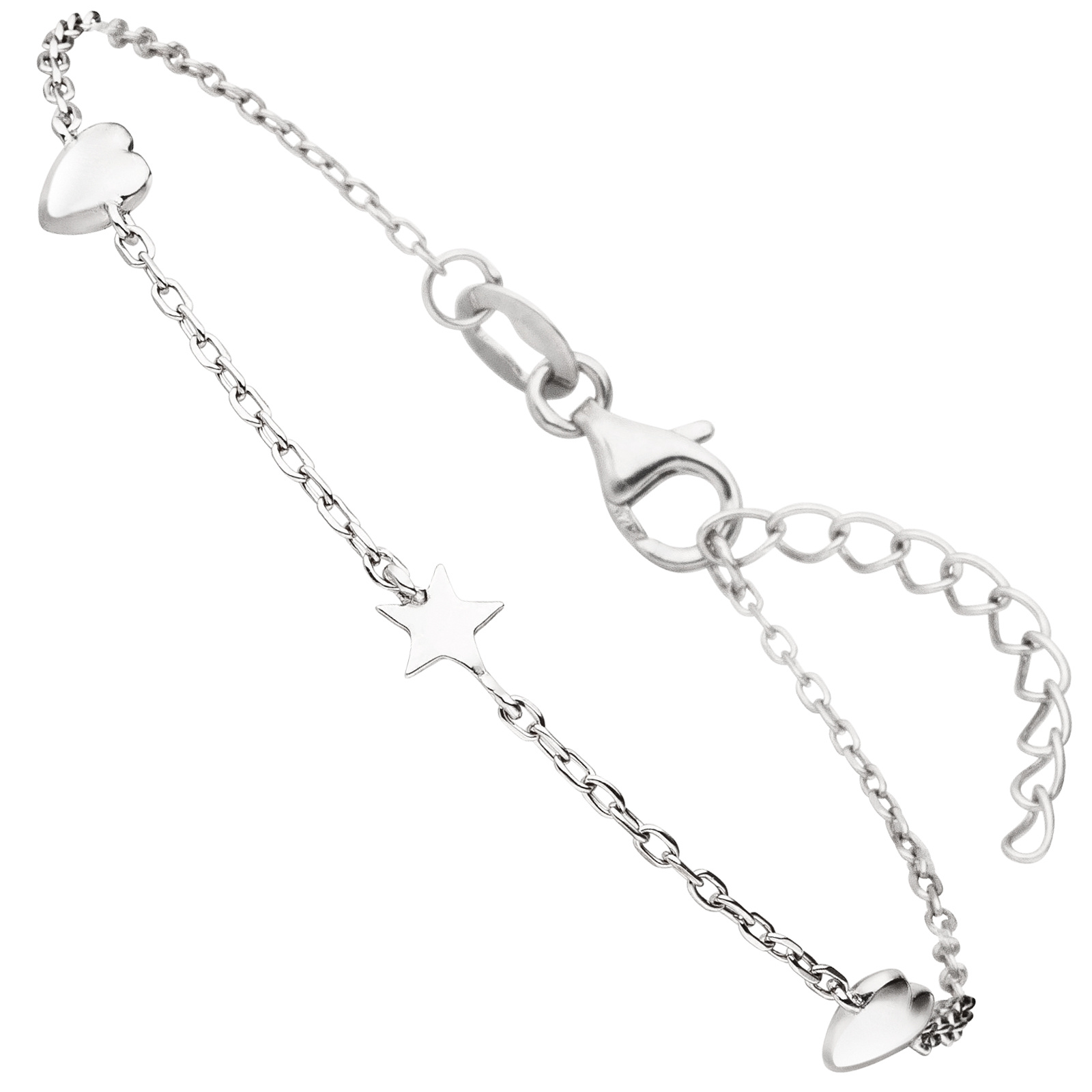 Armband "Herz/Stern" aus 925 Sterlingsilber, rhodiniert, mit Karabinerverschluss,