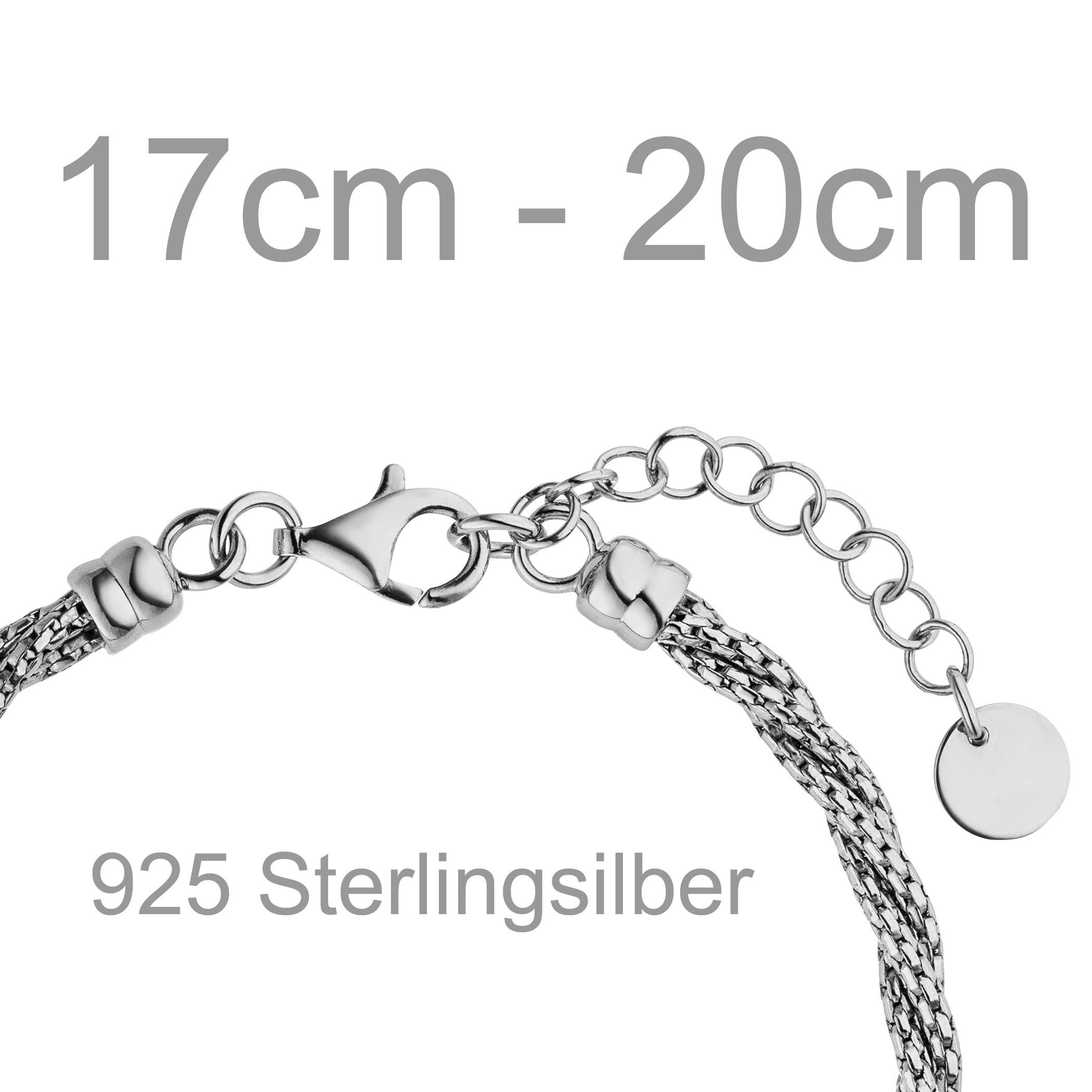 Armband aus 925 Sterlingsilber, rhodiniert, mit Karabinerverschluss,