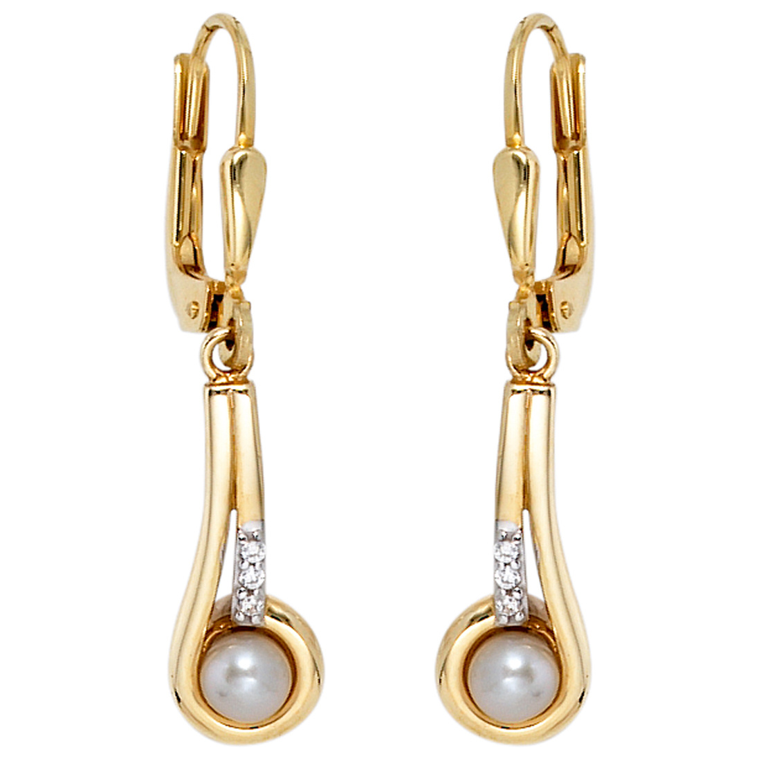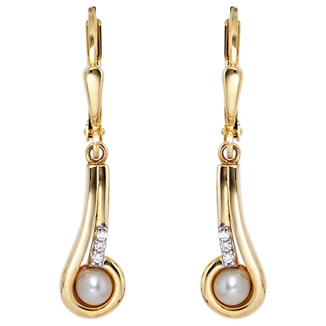 mit 2 Süßwasser-Zuchtperlen und 6 Zirkonia, Höhe ca. 29,5 mm,