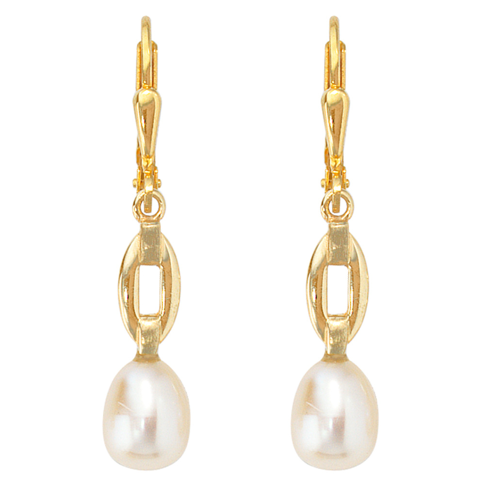 1 Paar Boutons aus 8 Karat (333) Gelbgold, teilmattiert, mit 2 Süßwasser-Zuchtperlen,