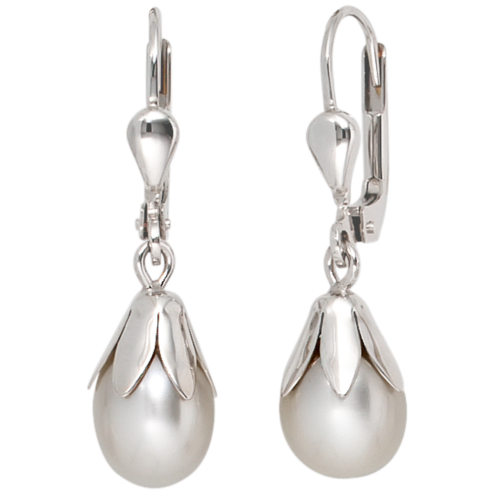Boutons 333 Gold Weißgold 2 Süßwasser Perlen Ohrringe Ohrhänger Perlenohrringe
