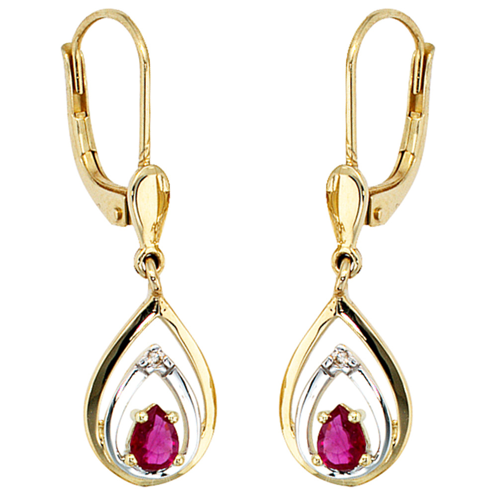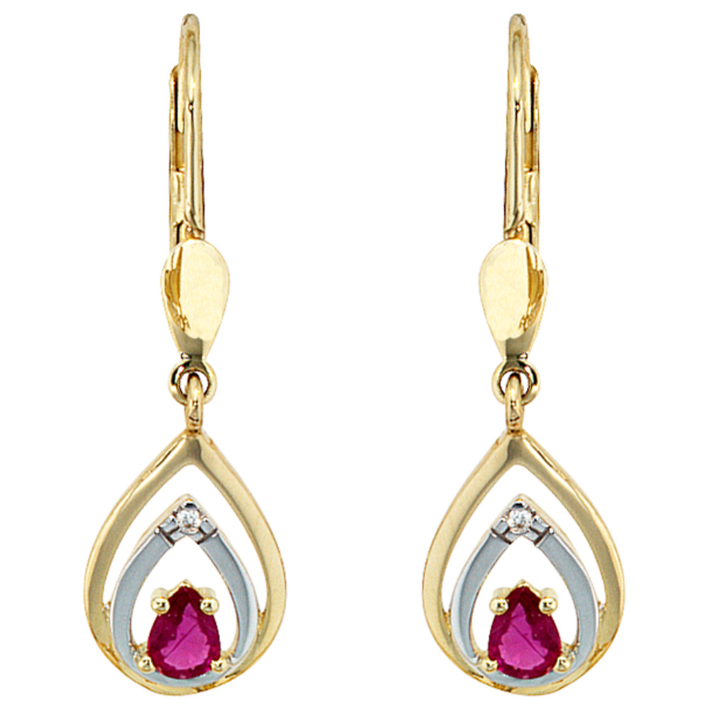1 Paar Boutons aus 14 Karat (585) Gelbgold, teilrhodiniert, mit 2 Rubinen und 2