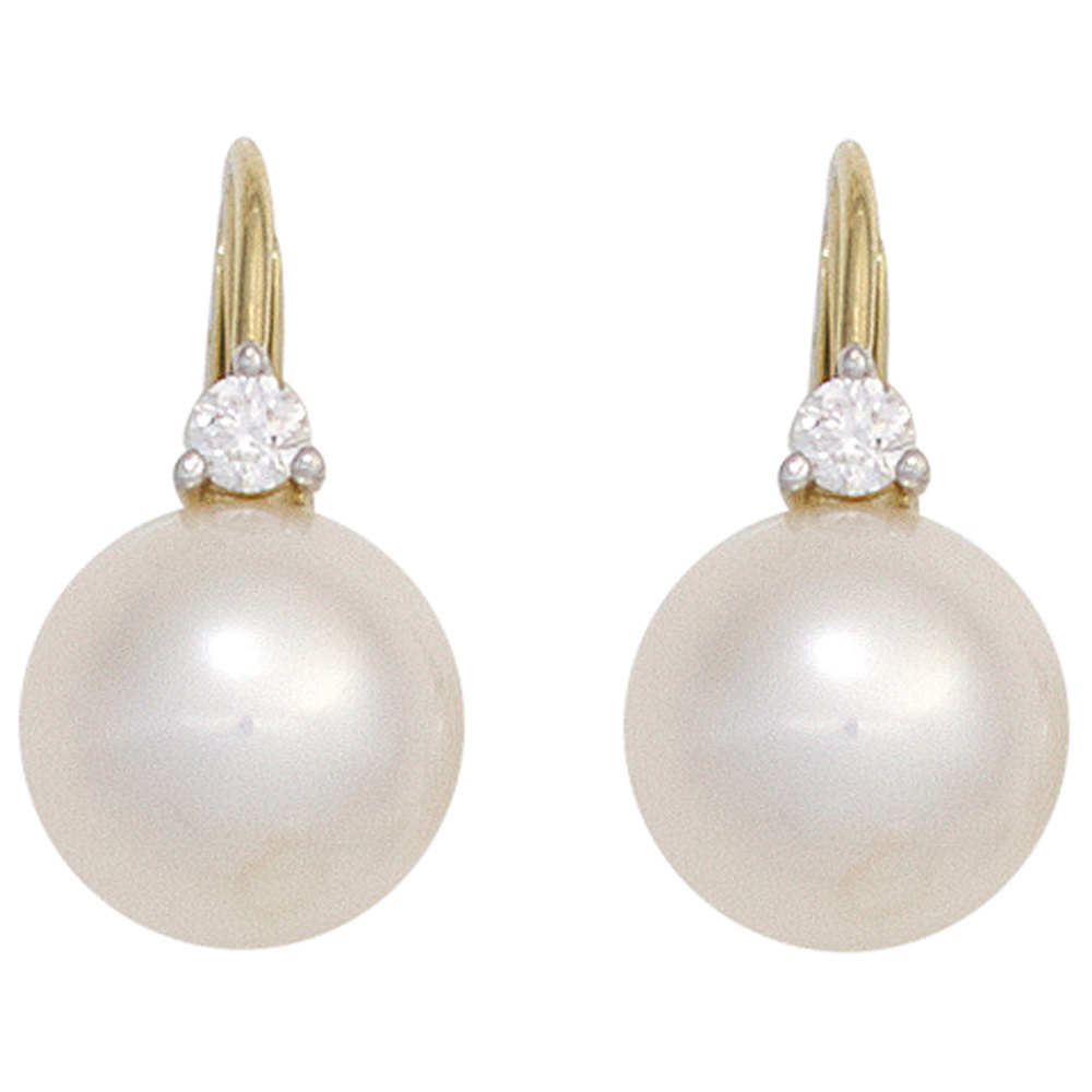 mit 2 Süßwasser-Zuchtperlen und 2 Diamant-Brillanten, 0,10 ct.,