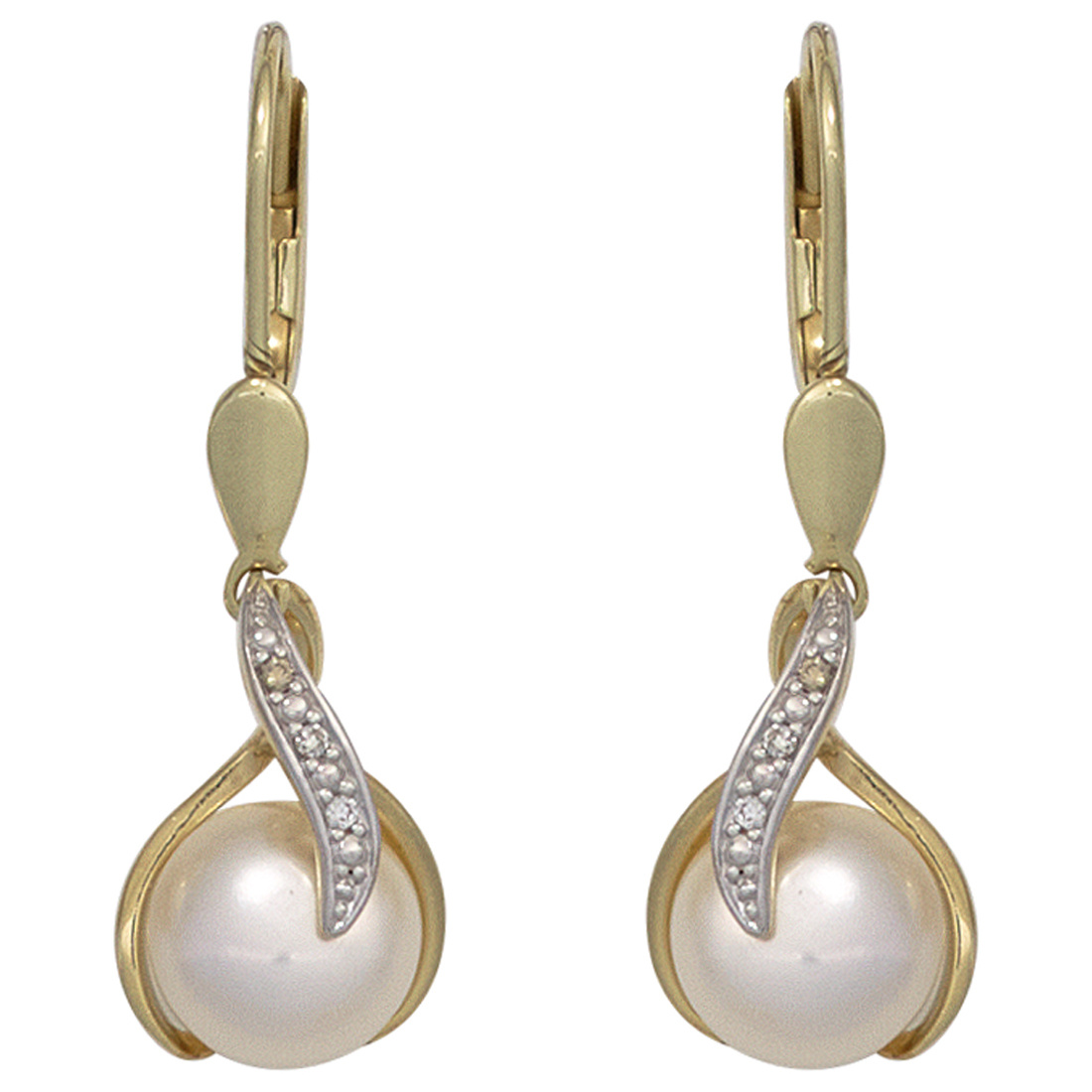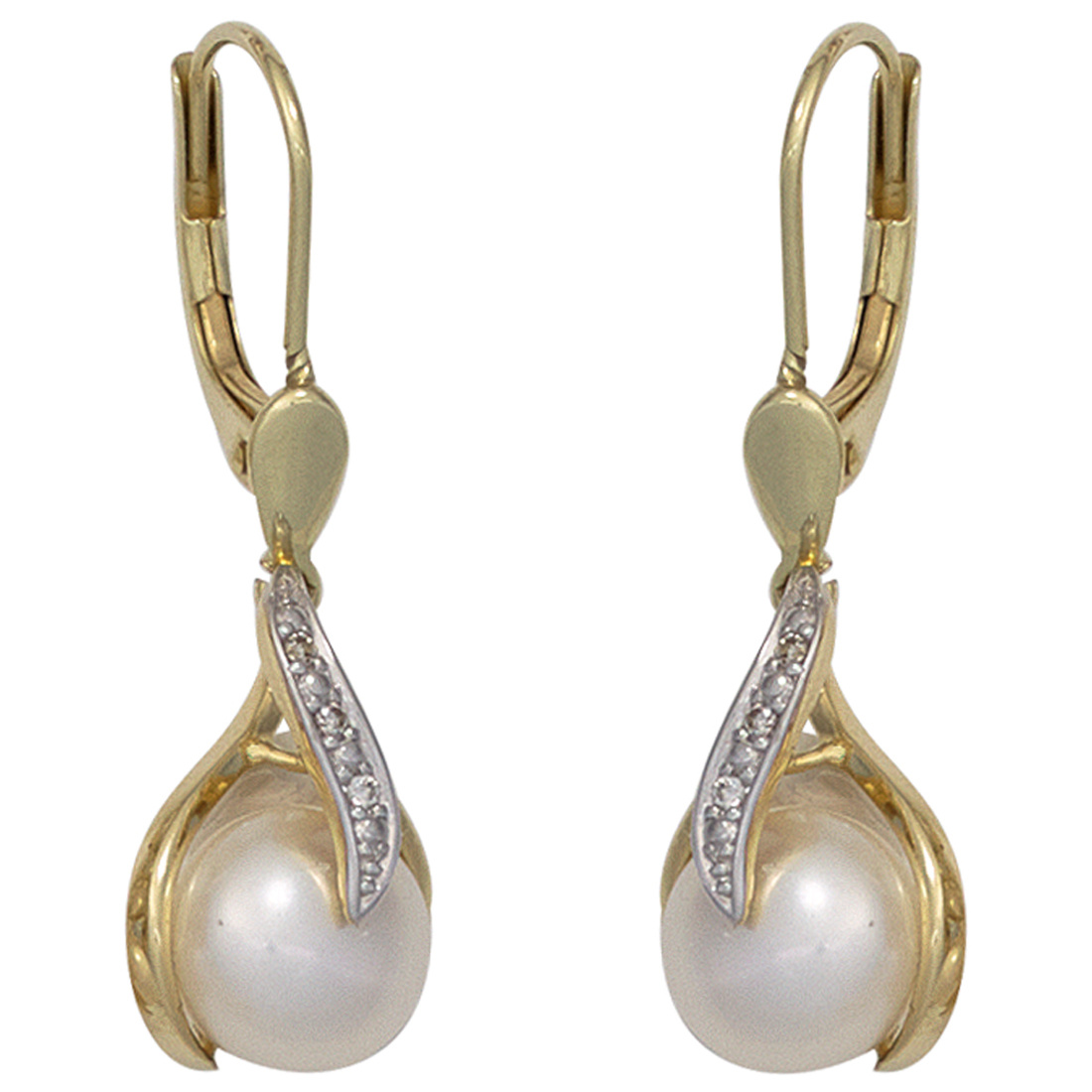 1 Paar Boutons aus 14 Karat (585) Gelbgold, teilrhodiniert, mit 2 Süßwasser-Zuchtperlen und