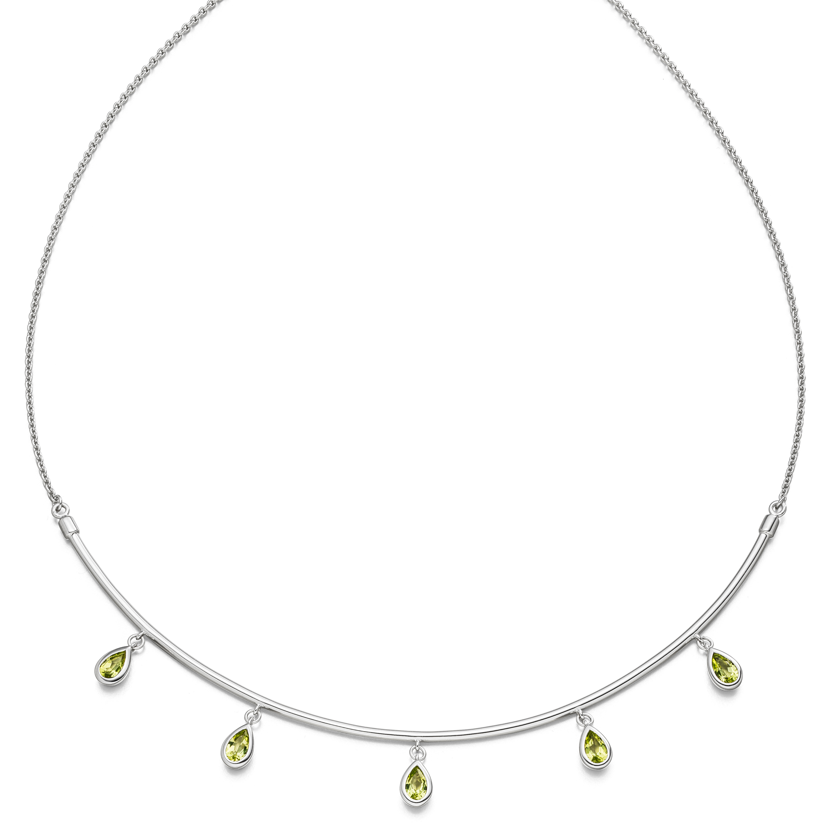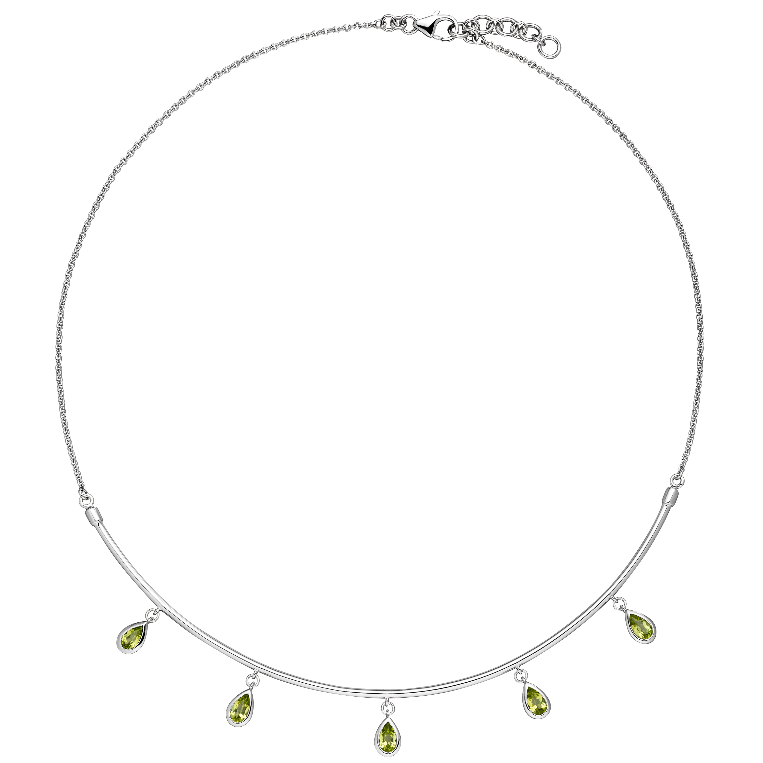 Collier / Halskette aus 14 Karat (585) Weißgold mit 5 Peridoten und