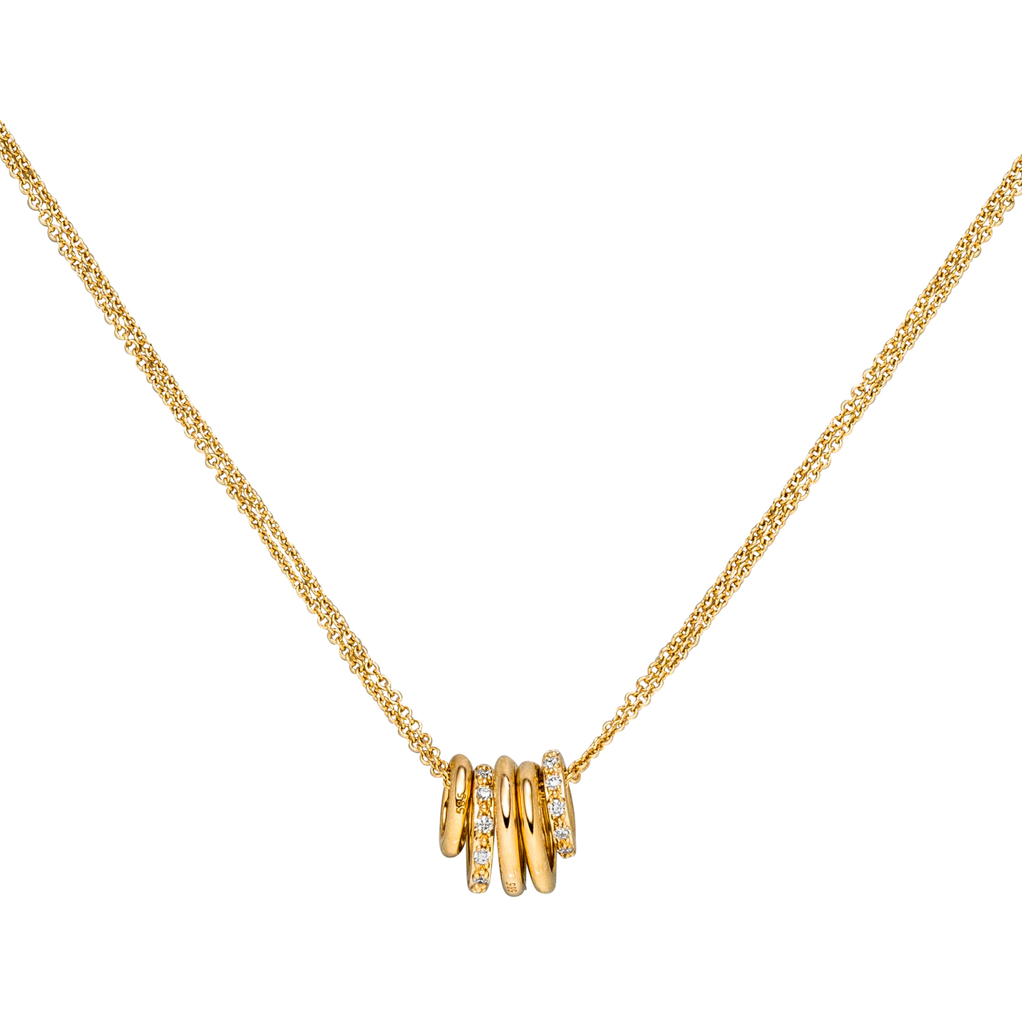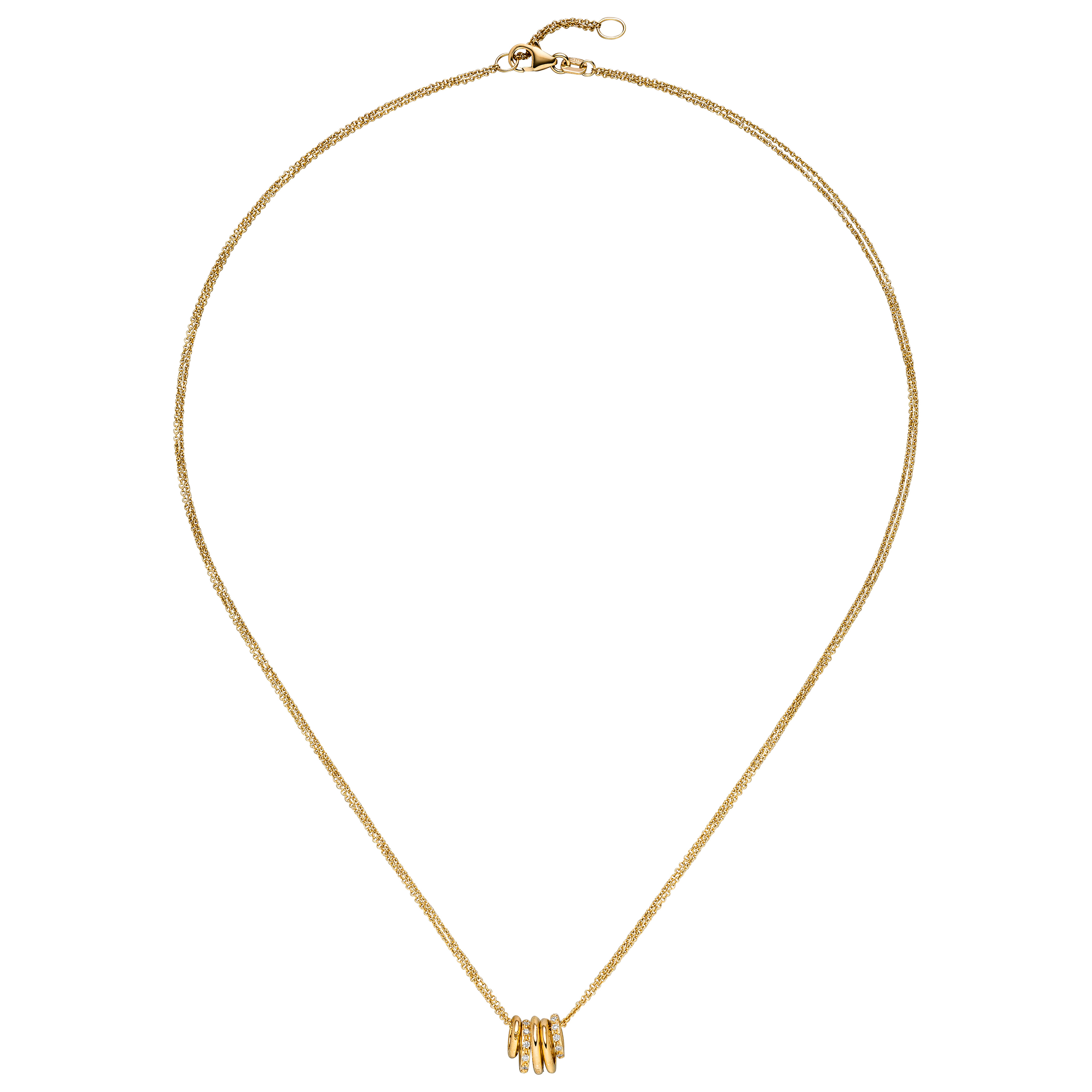 2-reihiges Collier / Ankerkette mit Anhänger aus 14 Karat (585) Gelbgold,
