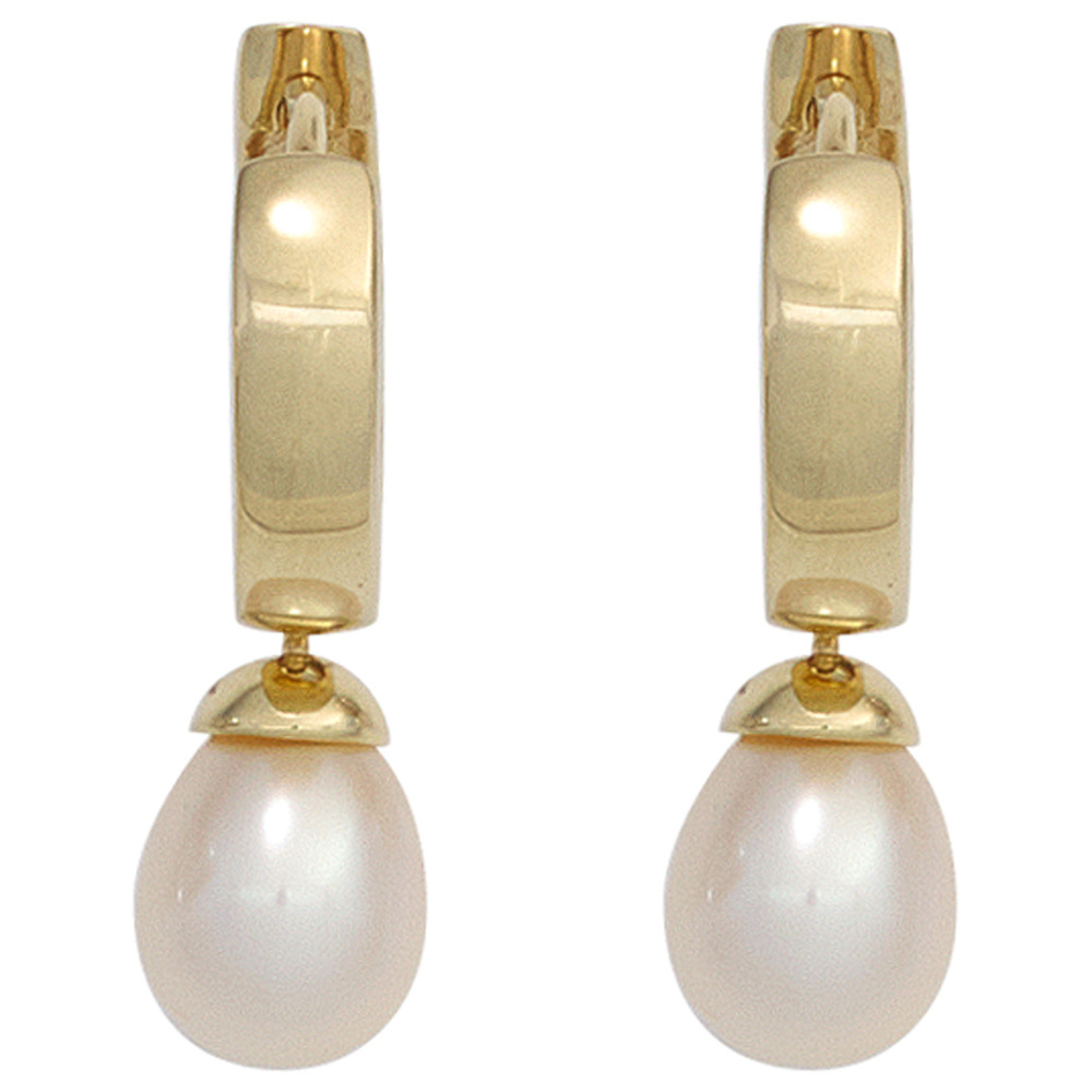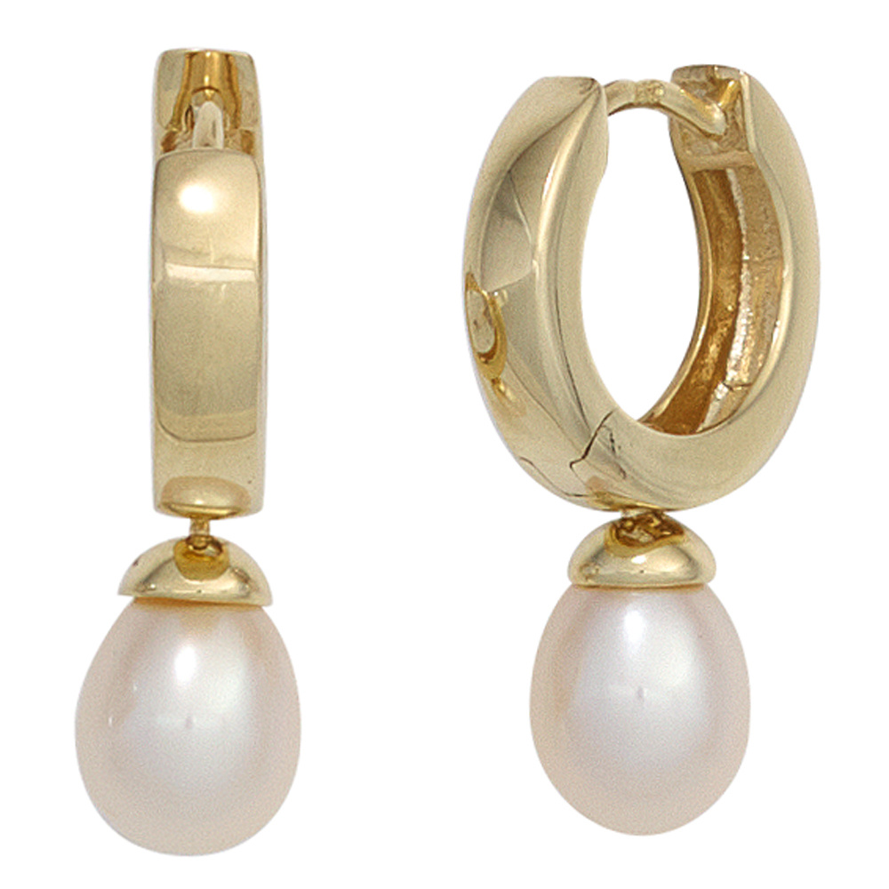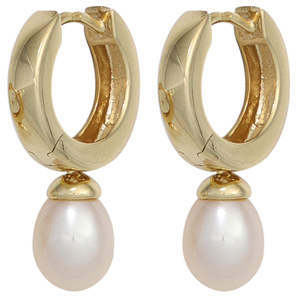 2 Süßwasser-Zuchtperlen, Außendurchmesser der Creole ca. 13,4 mm,
