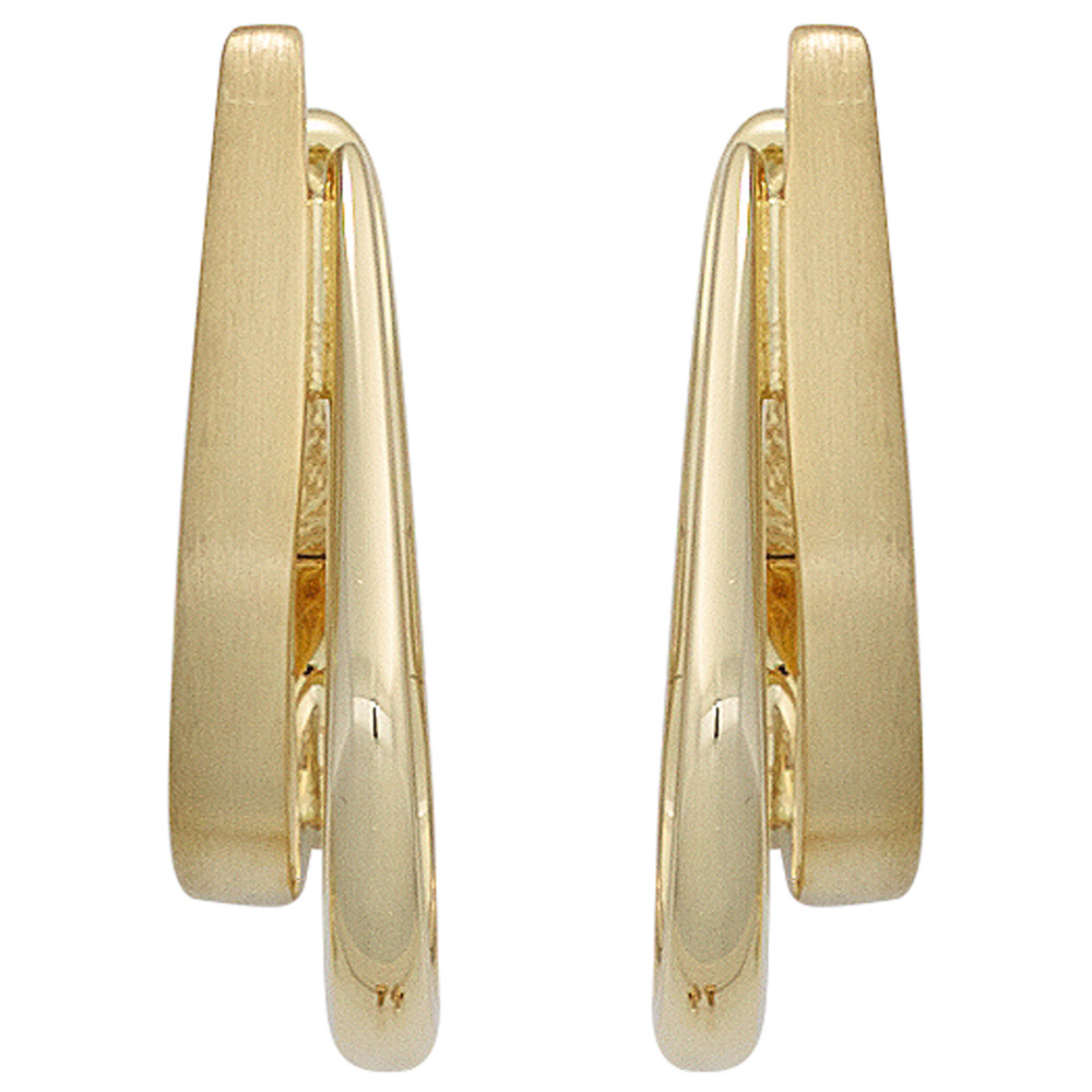 Creolen 585 Gold Gelbgold teil matt Ohrringe Goldohrringe Goldcreolen