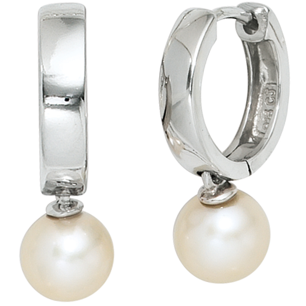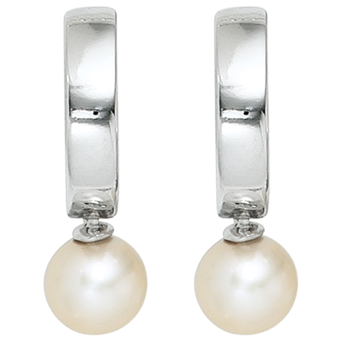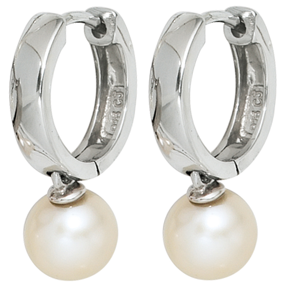 1 Paar Creolen aus 925 Sterlingsilber, rhodiniert, mit 2 Süßwasser-Zuchtperlen,