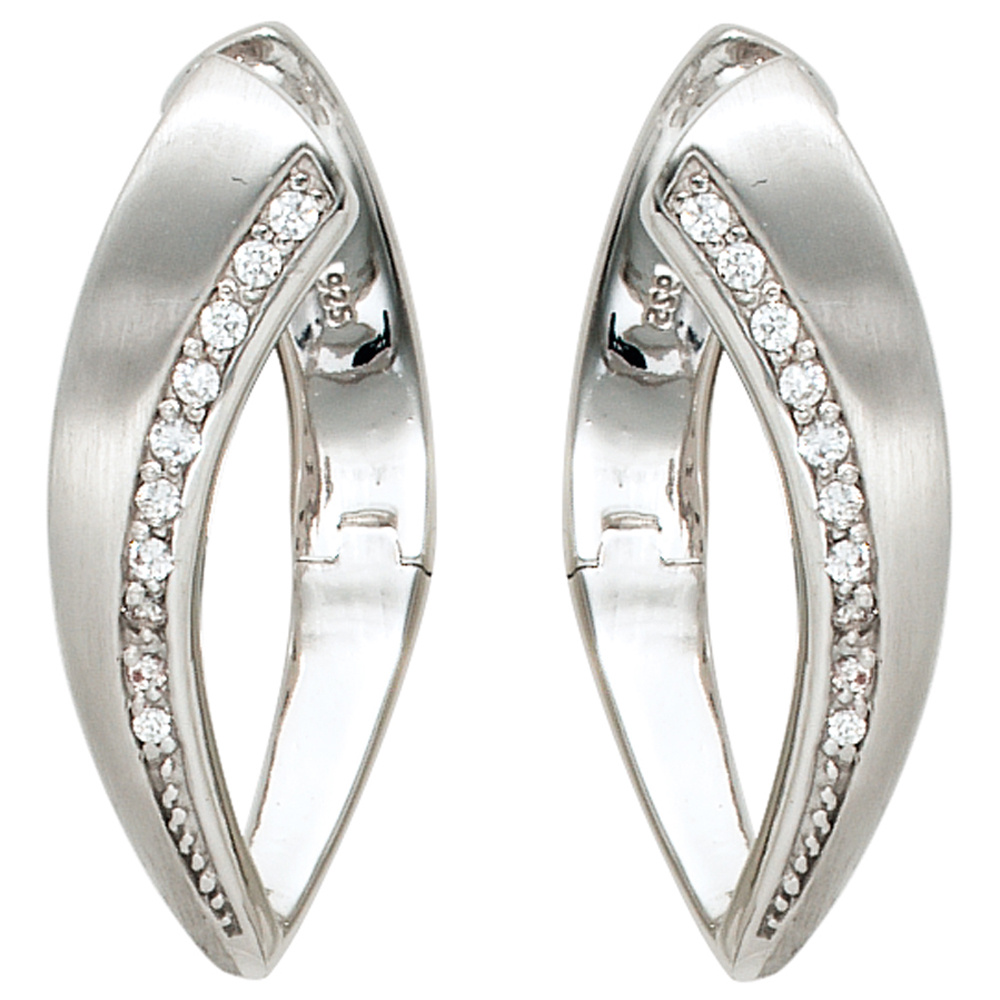 1 Paar Creolen mit Klappmechanik aus 925 Sterlingsilber, rhodiniert und teilmattiert,