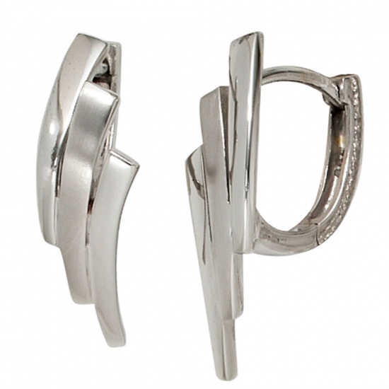 1 Paar Creolen mit Klappmechanik aus 925 Sterlingsilber, rhodiniert und teilmattiert,