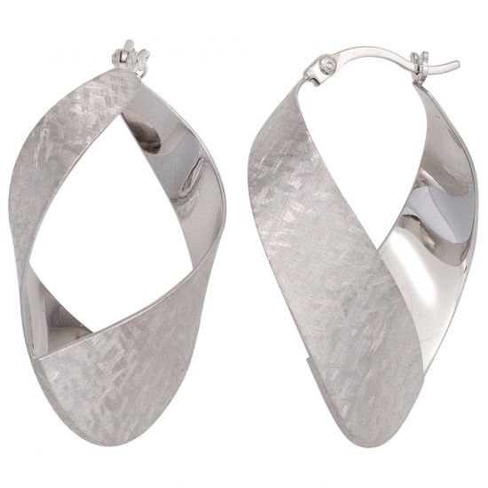 1 Paar Creolen aus 925 Sterlingsilber, rhodiniert und mattiert, mit Struktur,