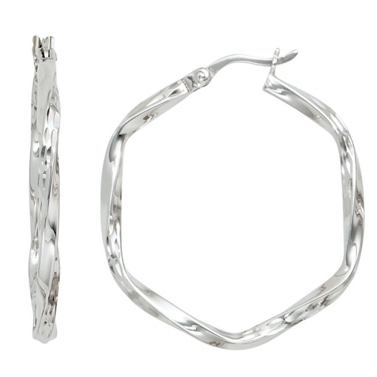 1 Paar Creolen aus 925 Sterlingsilber, rhodiniert und diamantiert,