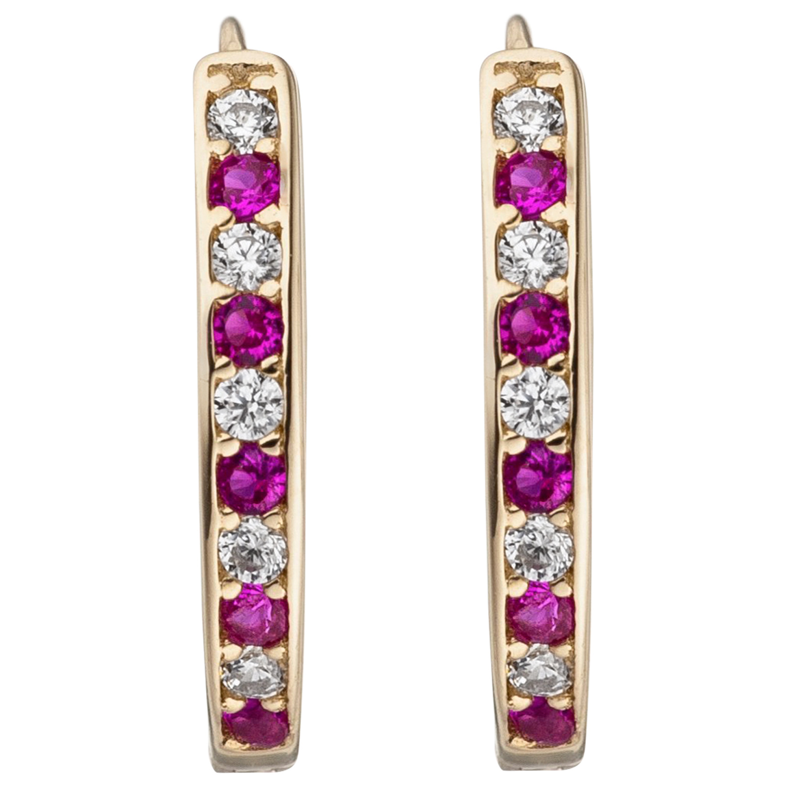 Creolen oval 333 Gold Gelbgold 20 Zirkonia rot weiß Ohrringe