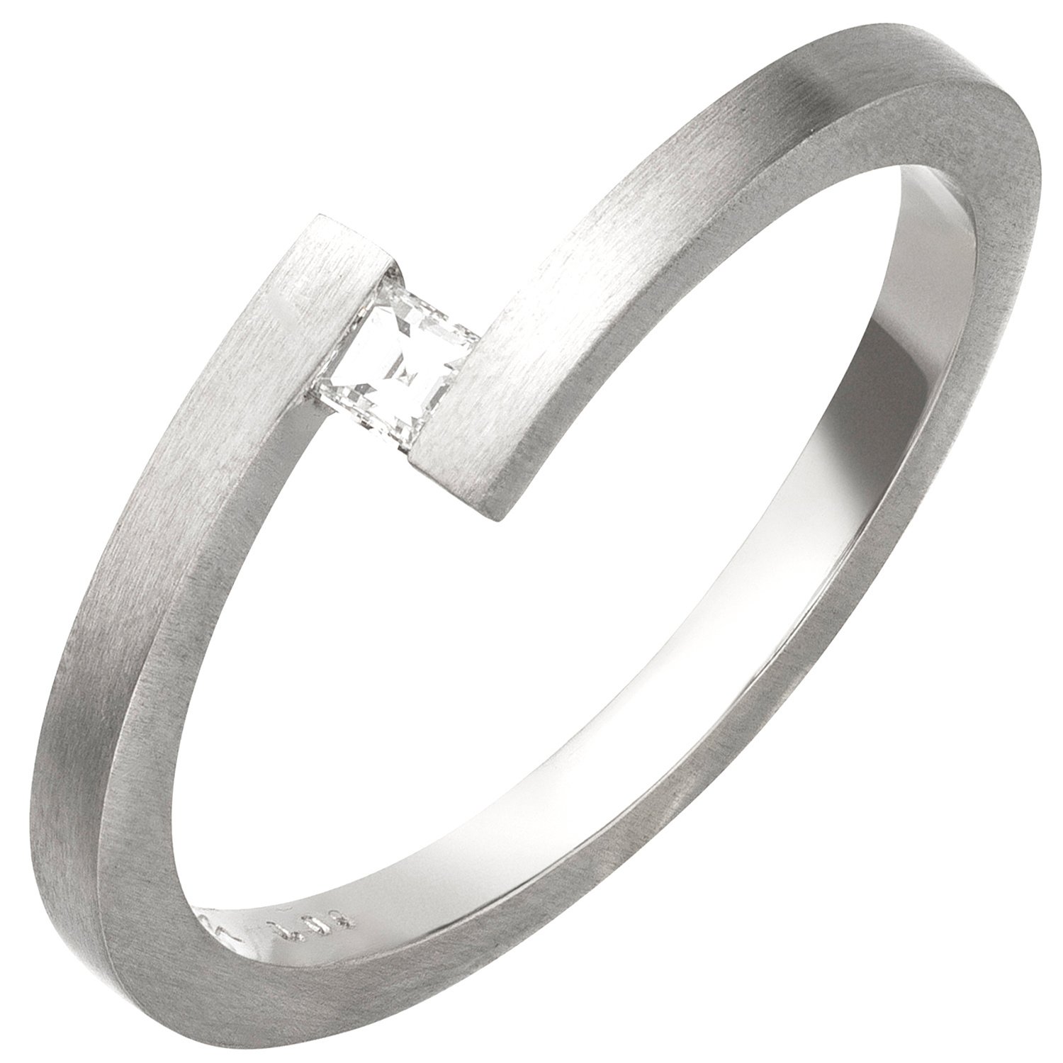 Damenring aus 950 Platin, mattiert, 1 Diamant im Carree-Schliff, 0,09 ct.,
