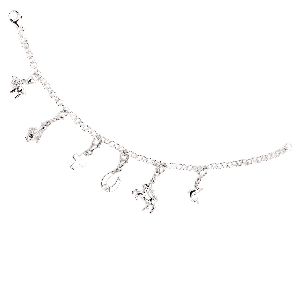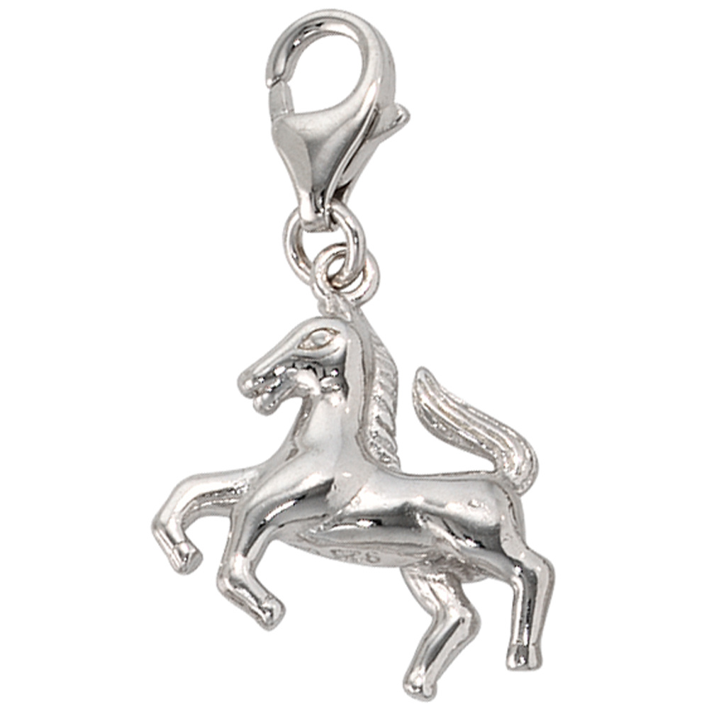 Einhänger / Charm "Pferd" aus 925 Sterlingsilber, rhodiniert, mit Karabinerverschluss,