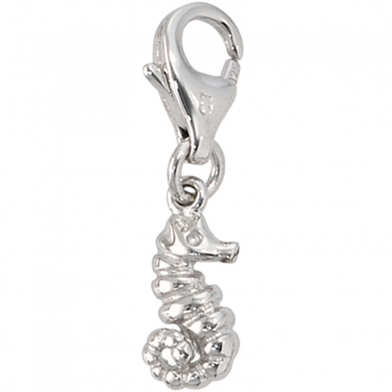 Einhänger / Charm "Seepferd" aus 925 Sterlingsilber, rhodiniert, mit Karabinerverschluss,