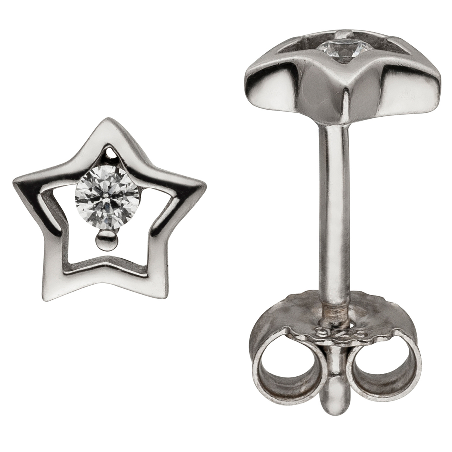1 Paar Ohrstecker "Stern" aus 925 Sterlingsilber, rhodiniert, mit 2 Zirkonia,
