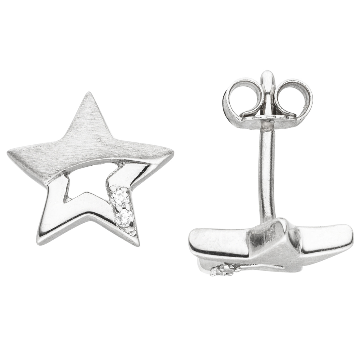 * 1 Paar Ohrstecker "Stern" aus 925 Sterlingsilber, rhodiniert und teilmattiert,