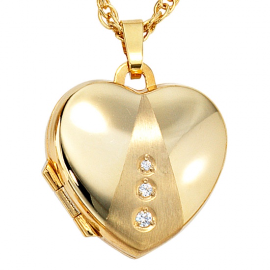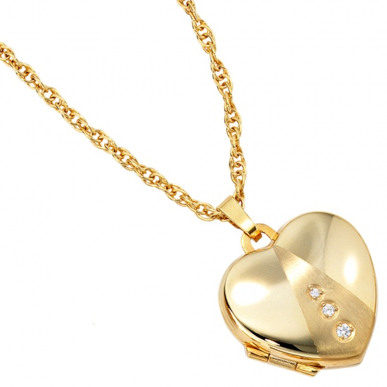 Medaillon "Herz" für bis zu 2 Fotos aus 8 Karat (333) Gelbgold, teilmattiert,
