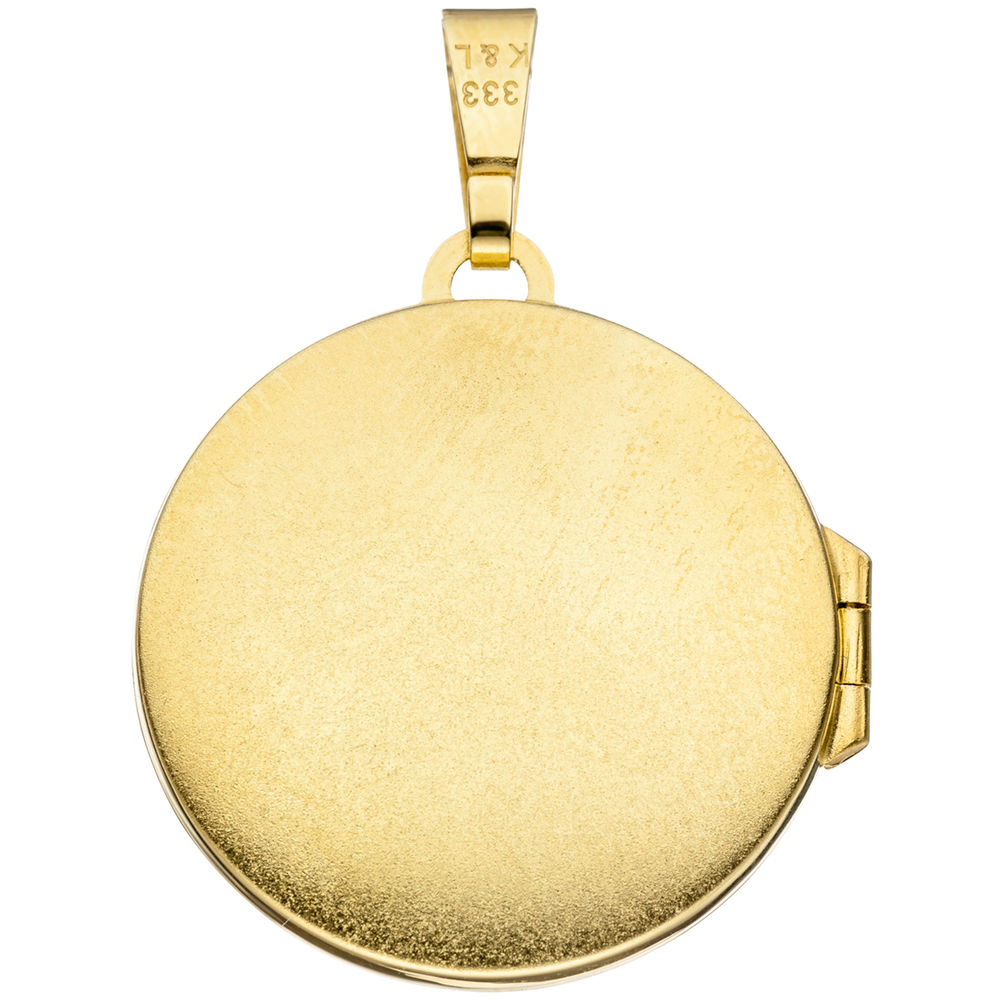 Rundes Medaillon für bis zu 2 Fotos aus 8 Karat (333) Gelbgold, teilrhodiniert und