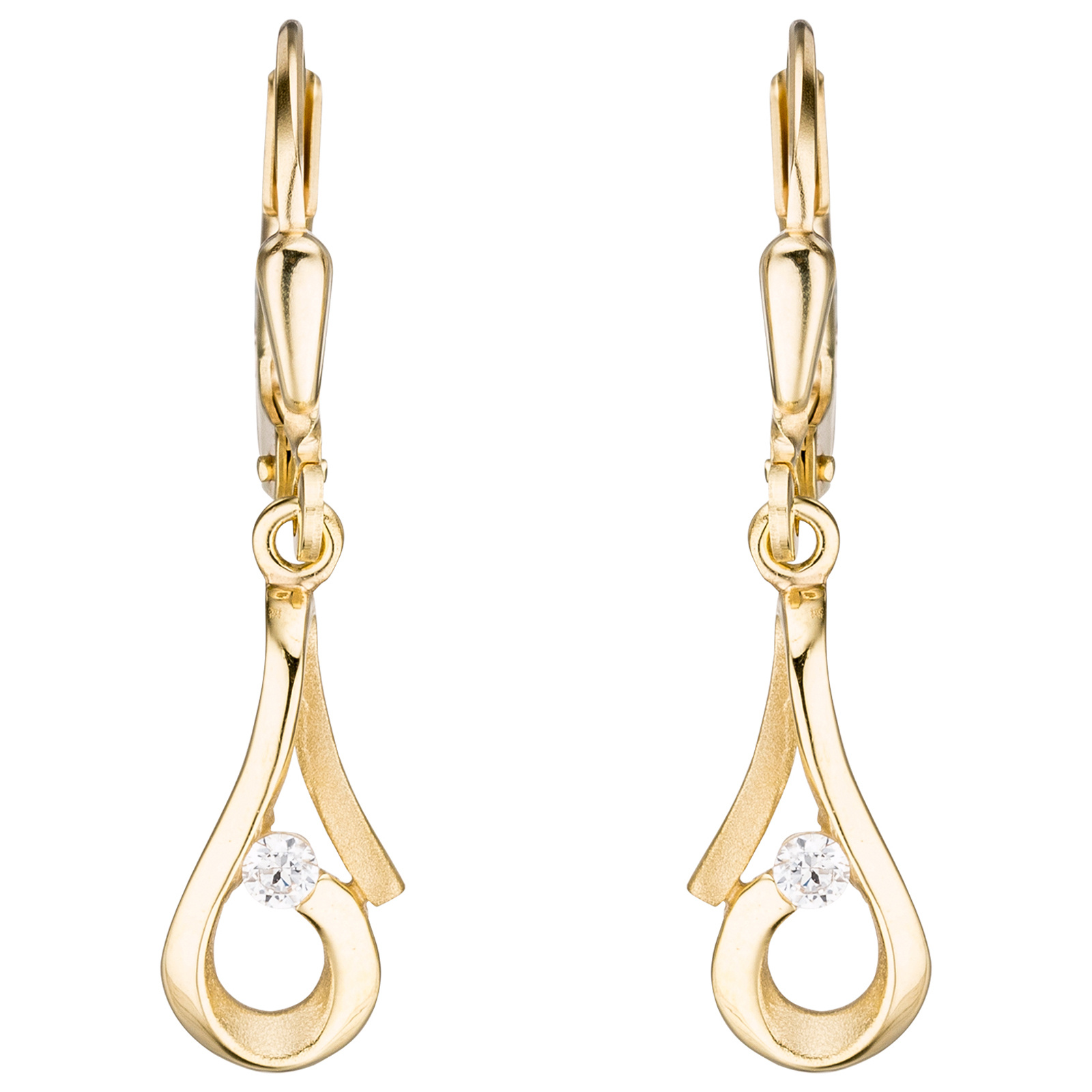 1 Paar Boutons aus 8 Karat (333) Gelbgold, teilmattiert, mit 2 Zirkonia,