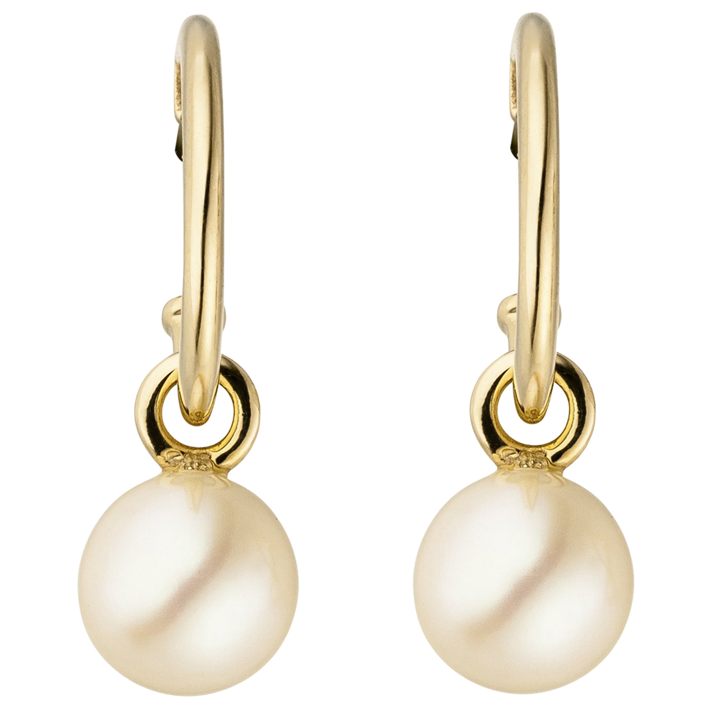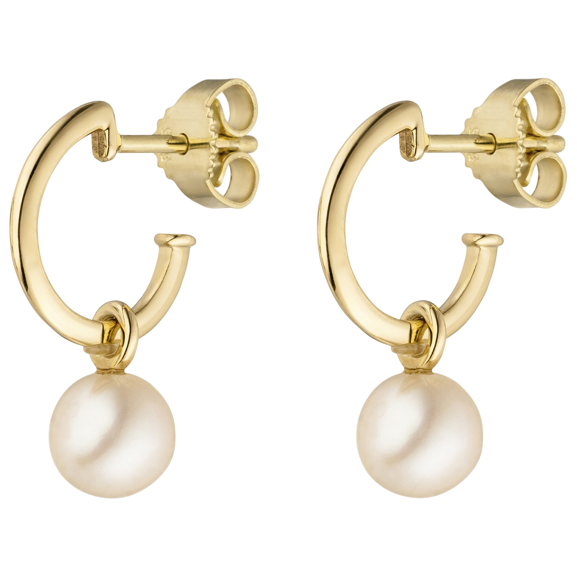 1 Paar Halbcreolen aus 14 Karat (585) Gelbgold mit 2 Süßwasser-Zuchtperlen,