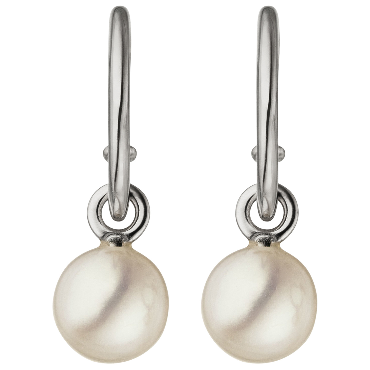 1 Paar Halbcreolen aus 14 Karat (585) Weißgold mit 2 Süßwasser-Zuchtperlen,