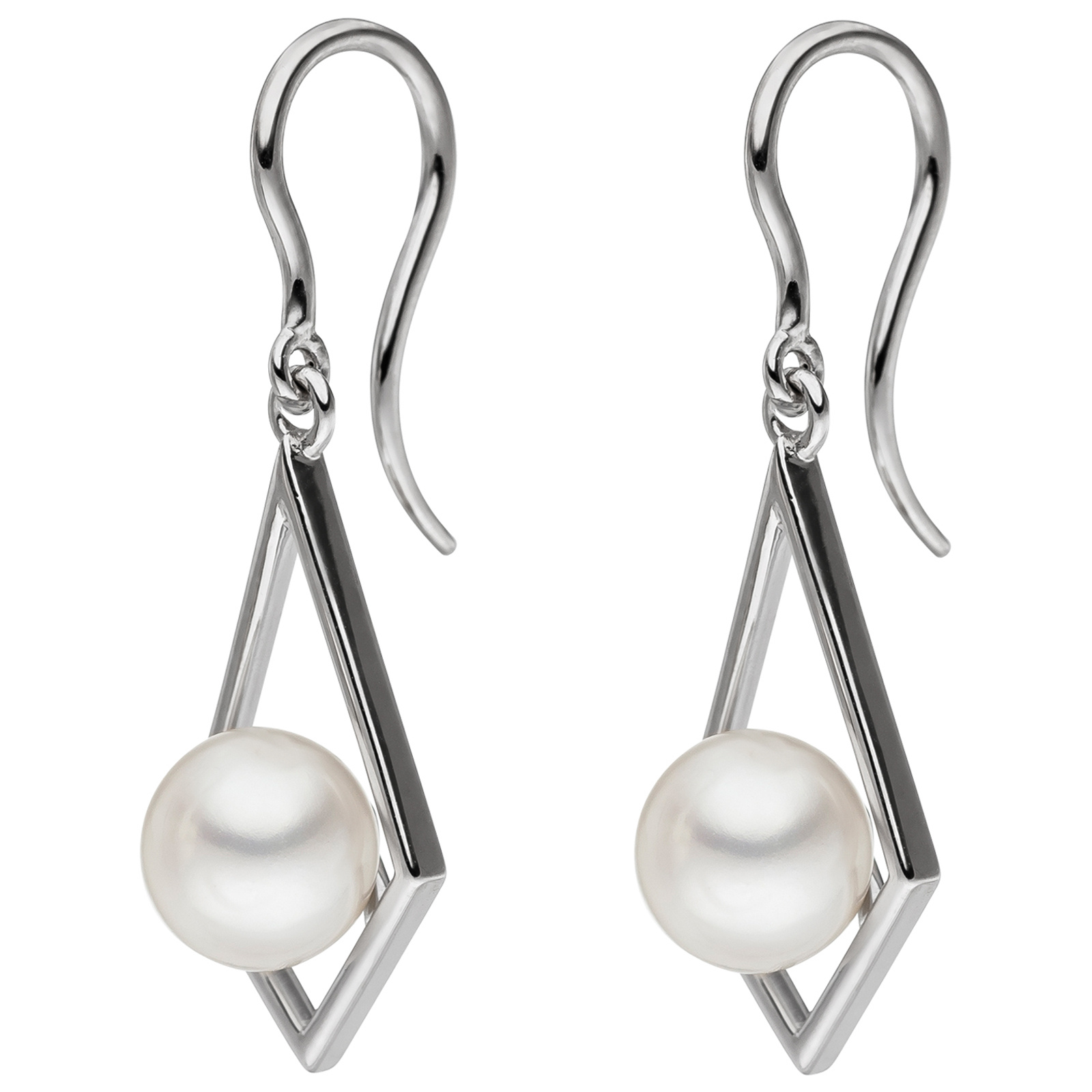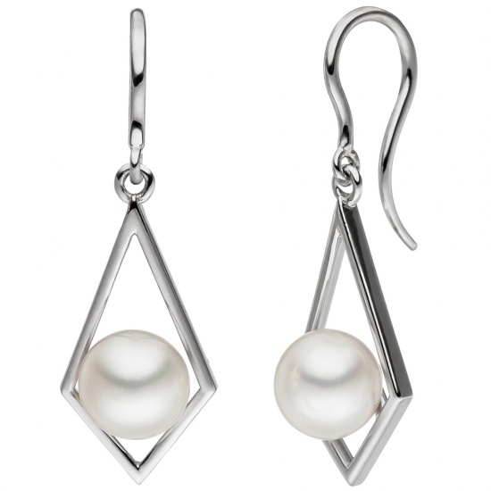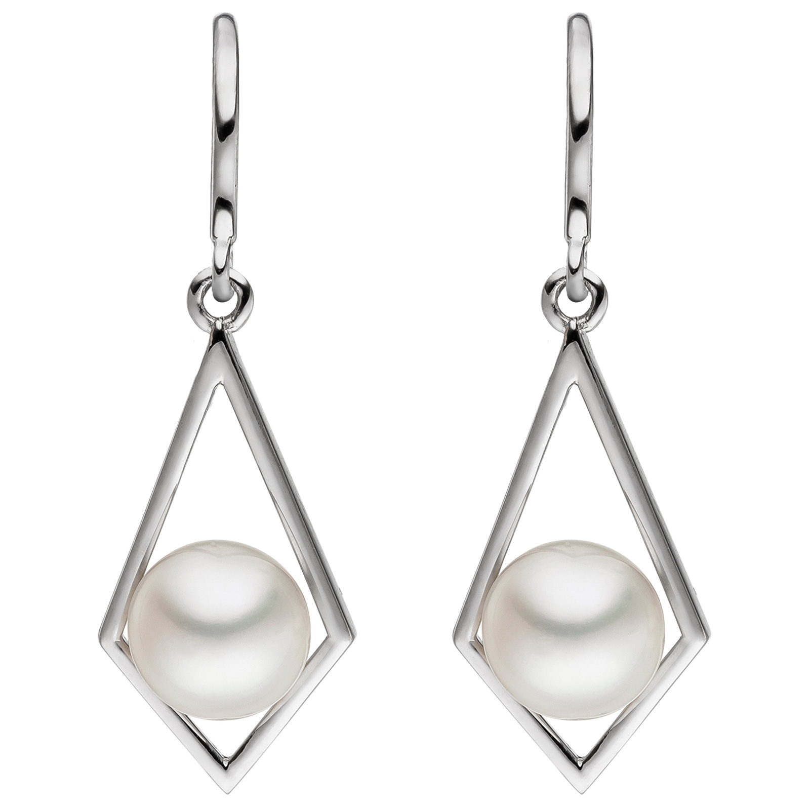 1 Paar Ohrhänger aus 14 Karat (585) Weißgold mit 2 Süßwasser-Zuchtperlen,