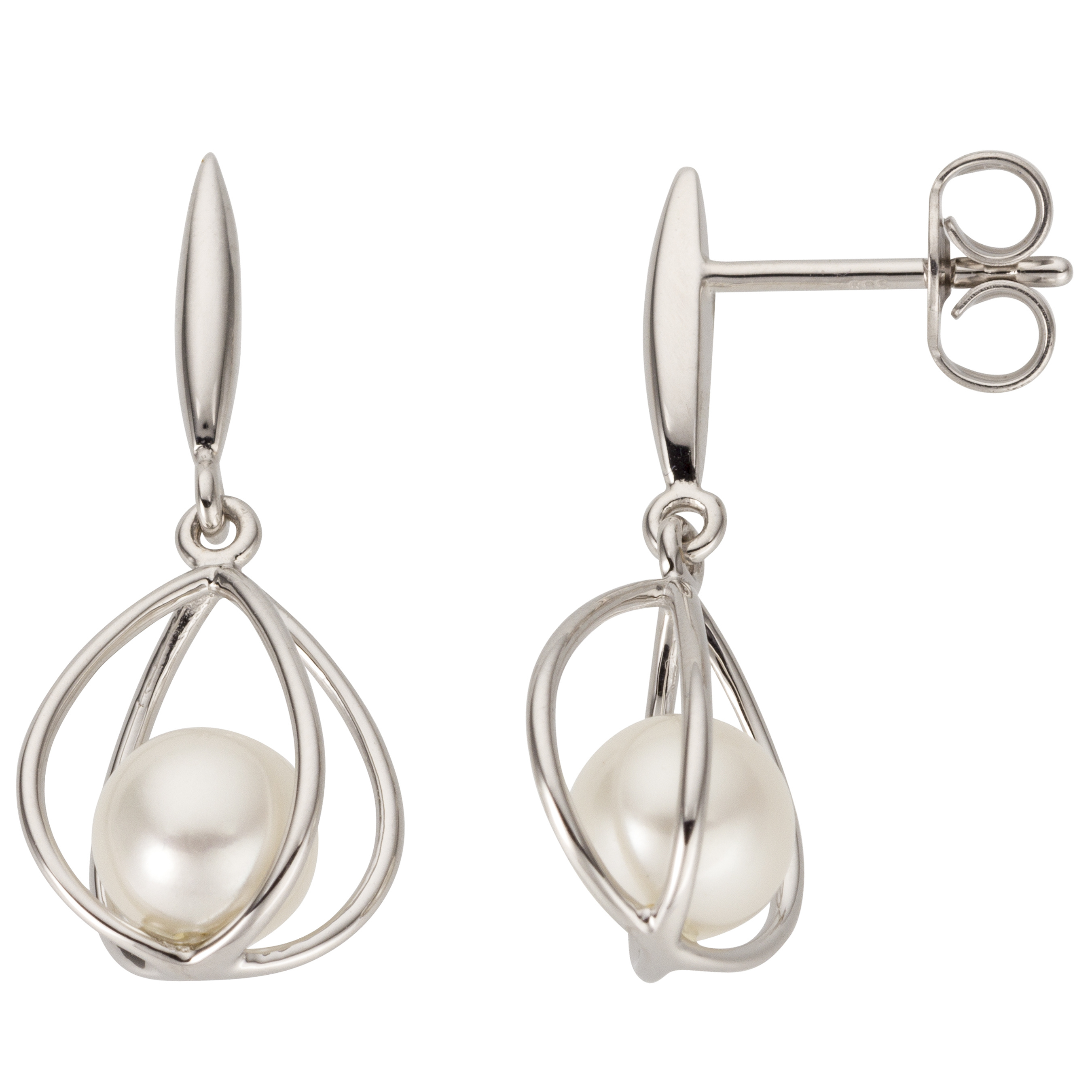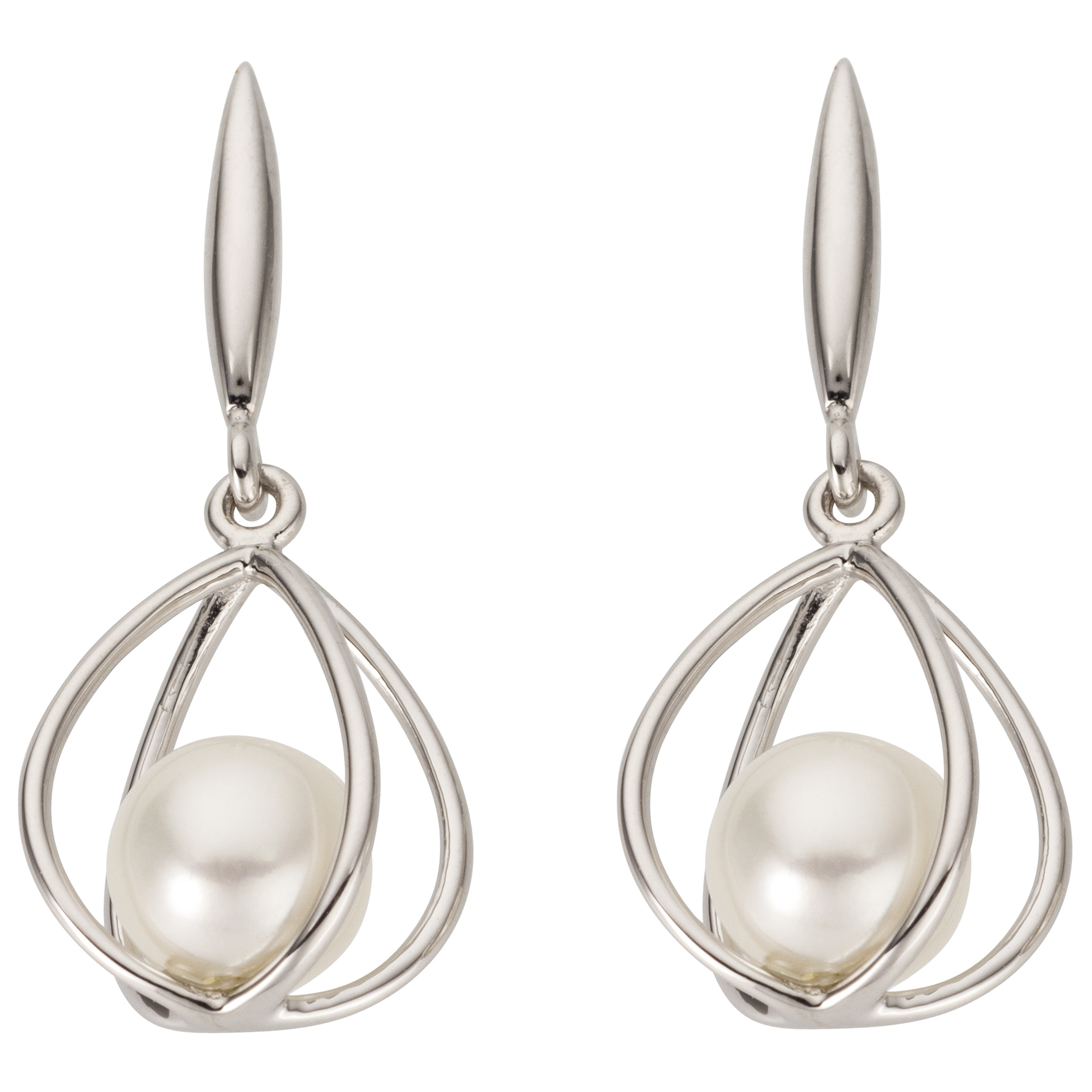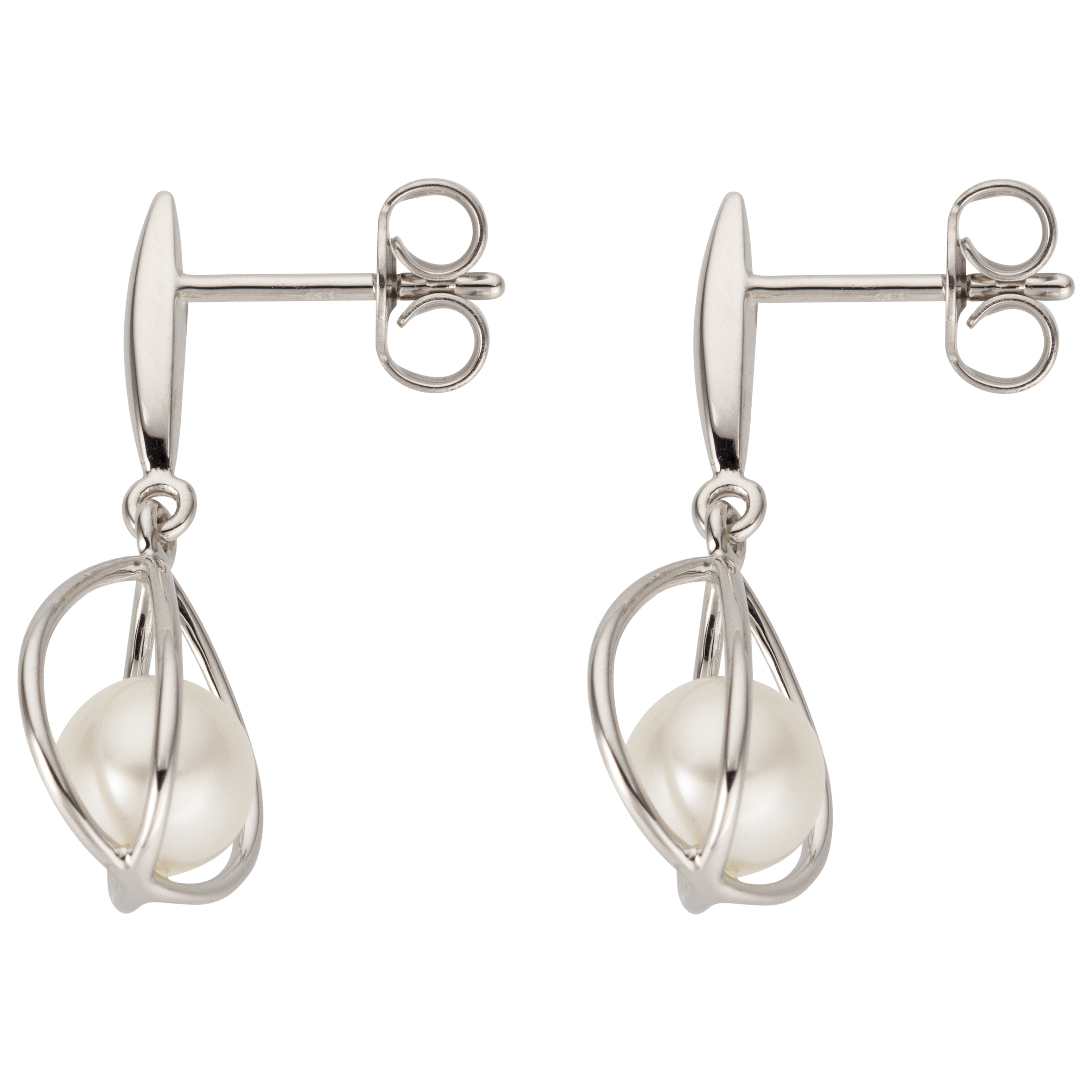 1 Paar Ohrhänger aus 14 Karat (585) Weißgold mit 2 Süßwasser-Zuchtperlen,