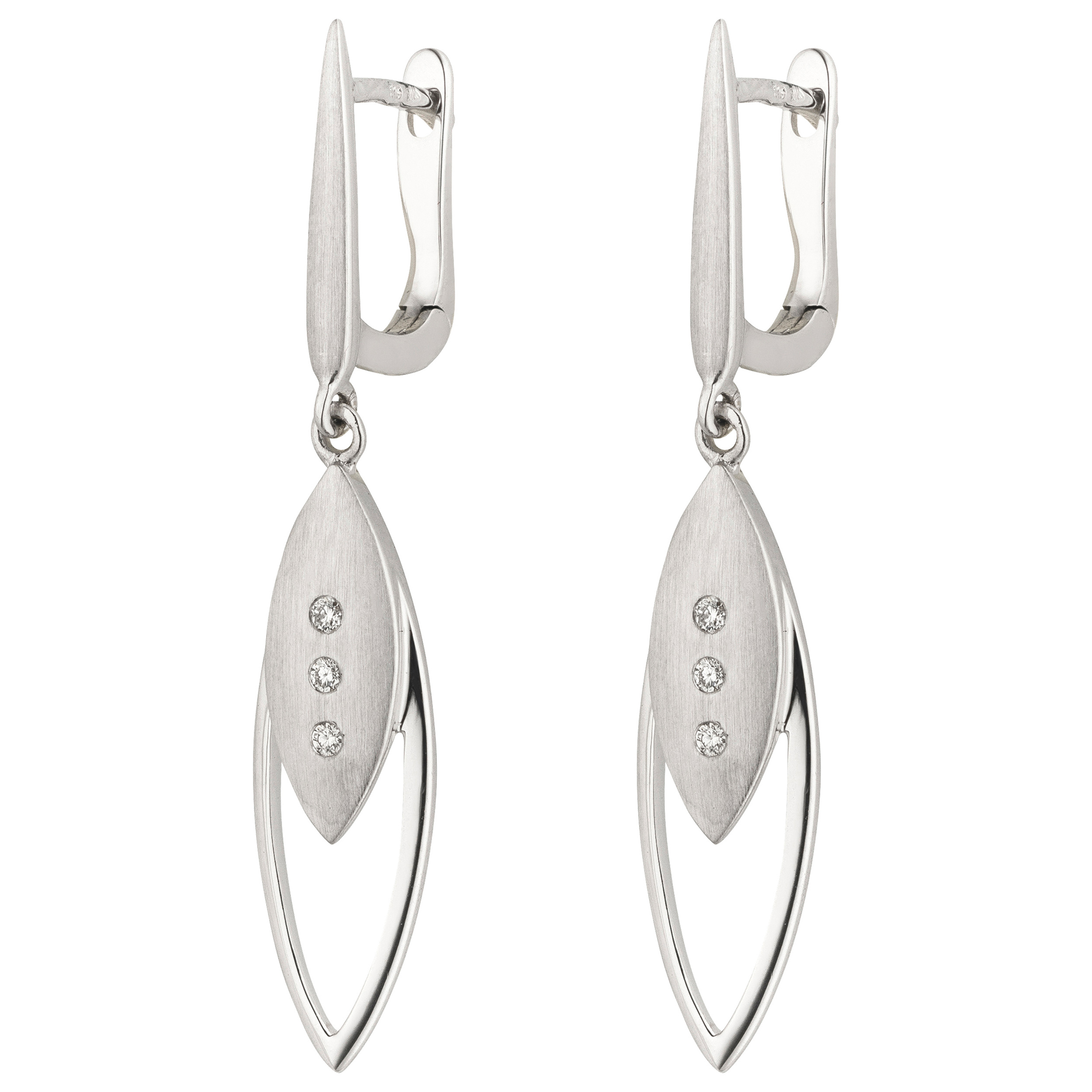 1 Paar Boutons aus 14 Karat (585) Weißgold, teilmattiert, mit 6 Diamant-Brillanten,