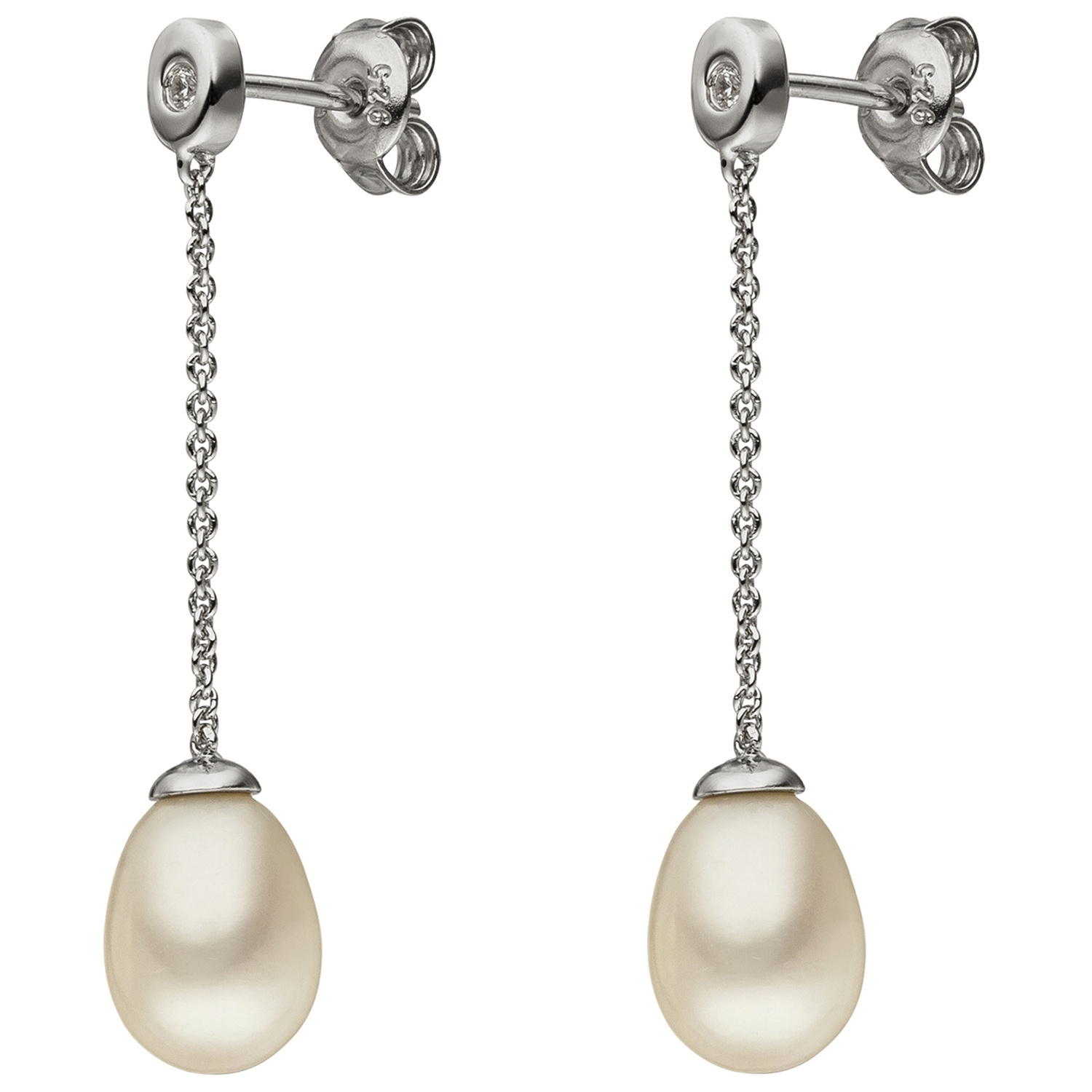 1 Paar Ohrhänger aus 925 Sterlingsilber, rhodiniert, mit 2 Süßwasser-Zuchtperlen