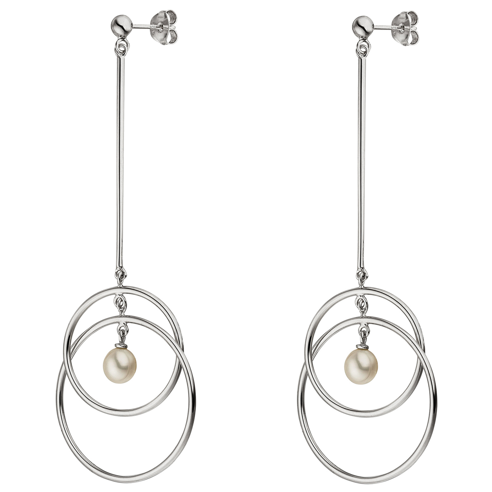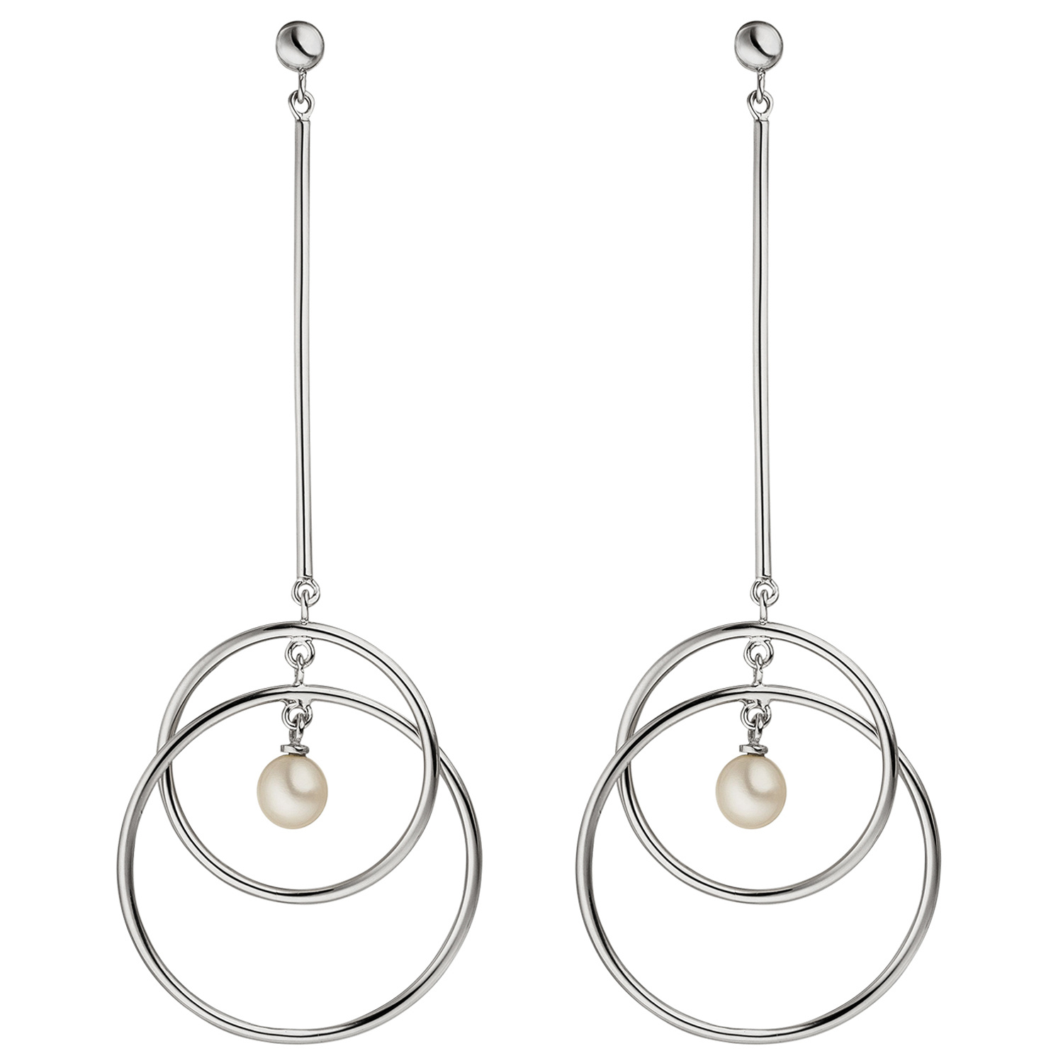 1 Paar Ohrhänger aus 925 Sterlingsilber, rhodiniert, mit 2 Süßwasser-Zuchtperlen,