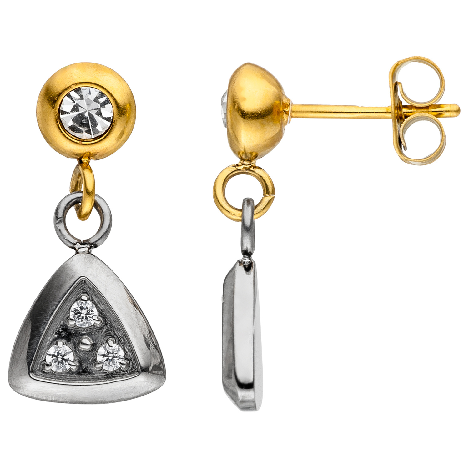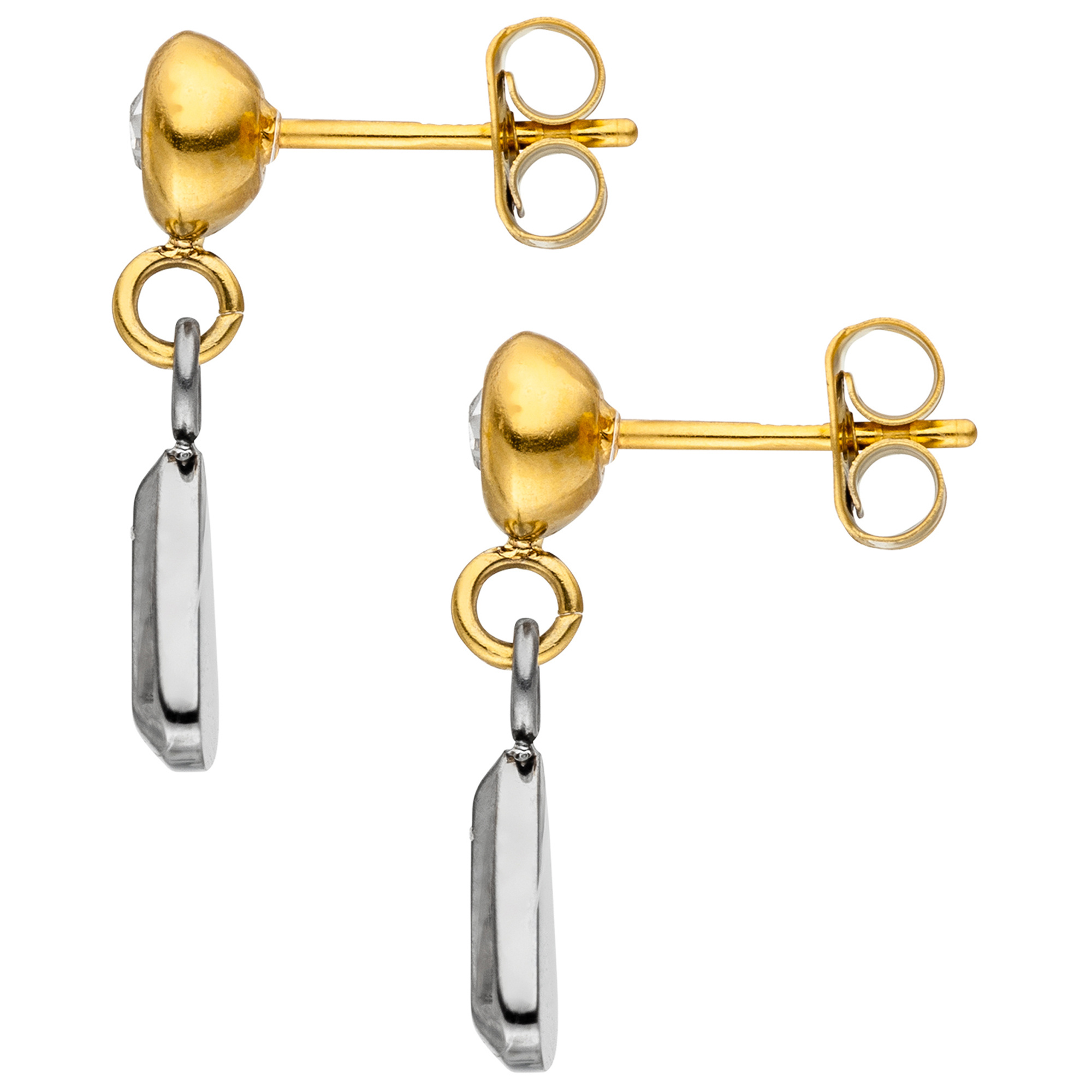 1 Paar Ohrhänger aus Edelstahl mit gelbgoldfarbener PVD-Beschichtung kombiniert,