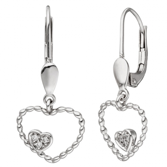 1 Paar Ohrhänger / Boutons "Herzen" aus 14 Karat (585) Weißgold mit 6 Diamant-Brillanten,