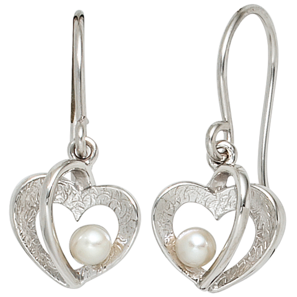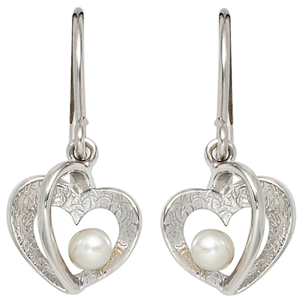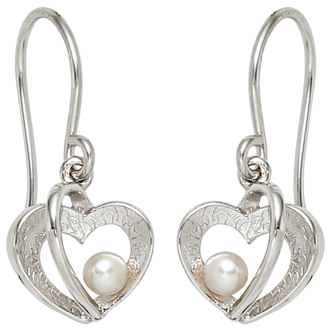 1 Paar Ohrhaken "Herz" aus 925 Sterlingsilber, rhodiniert und teileismatt,