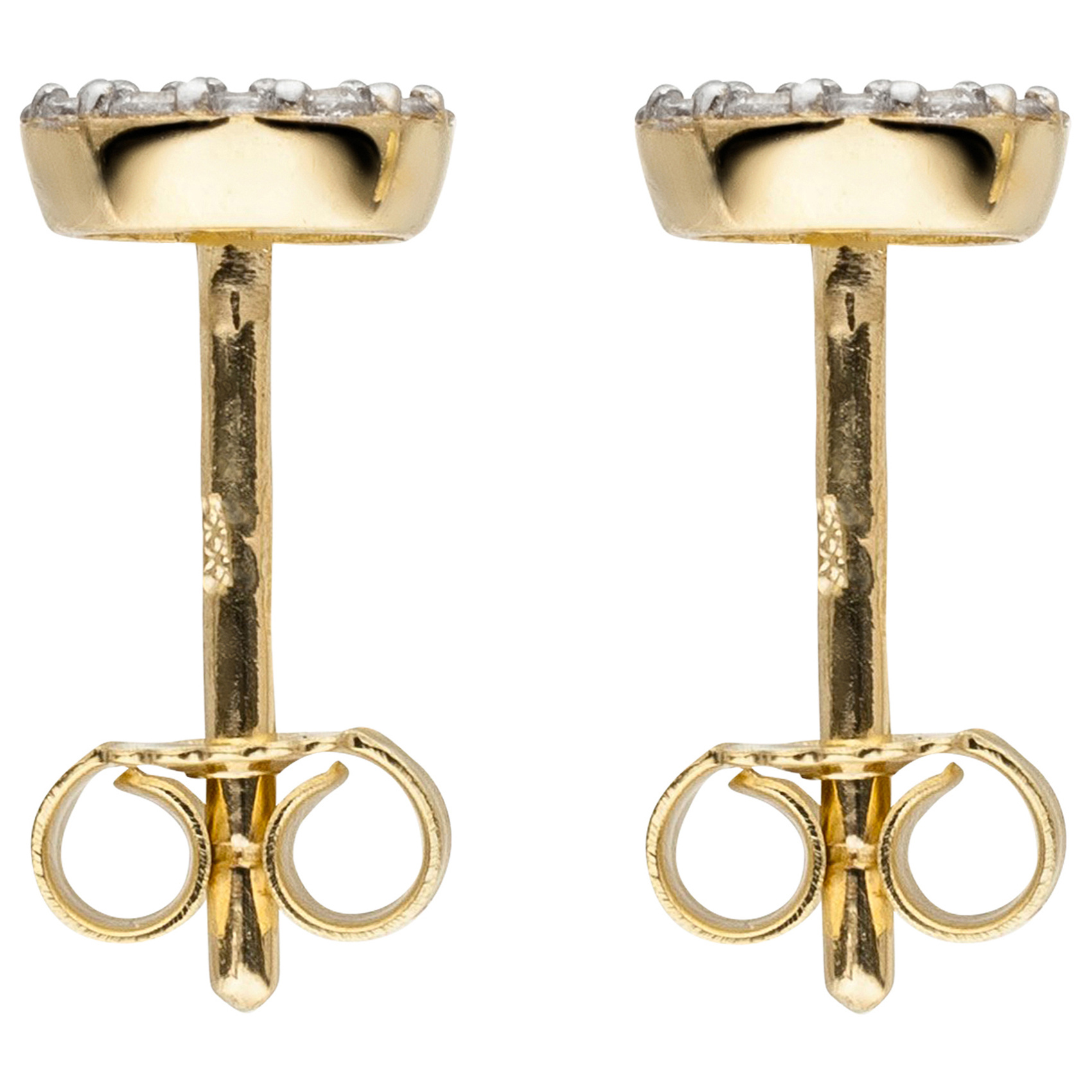 Ohrstecker 375 Gold Gelbgold bicolor 14 Zirkonia Ohrringe Goldohrringe